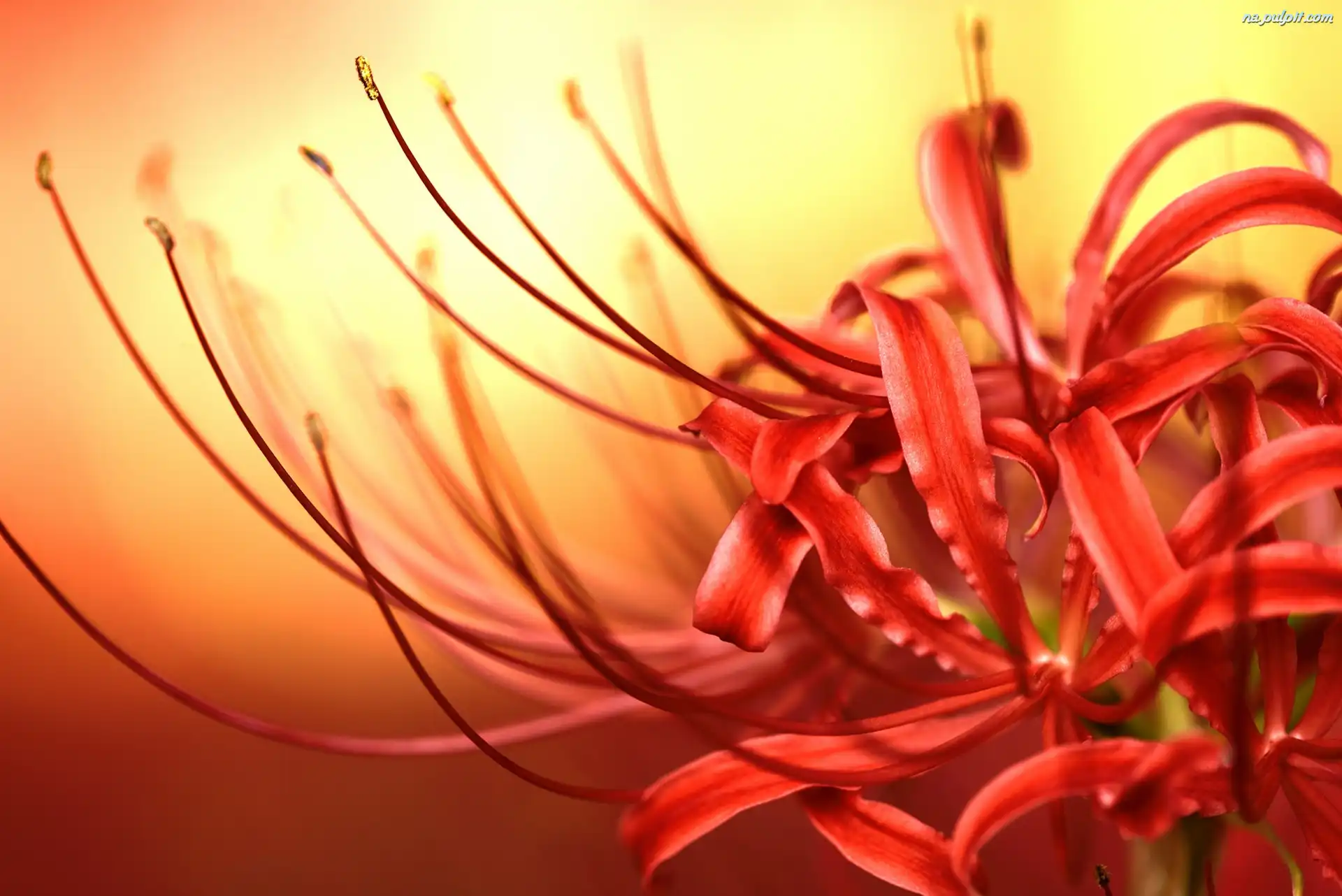 Czerwona pajęcza lilia, Płatki, Makro, Lycoris, Kwiat, Czerwone Na Pulpit