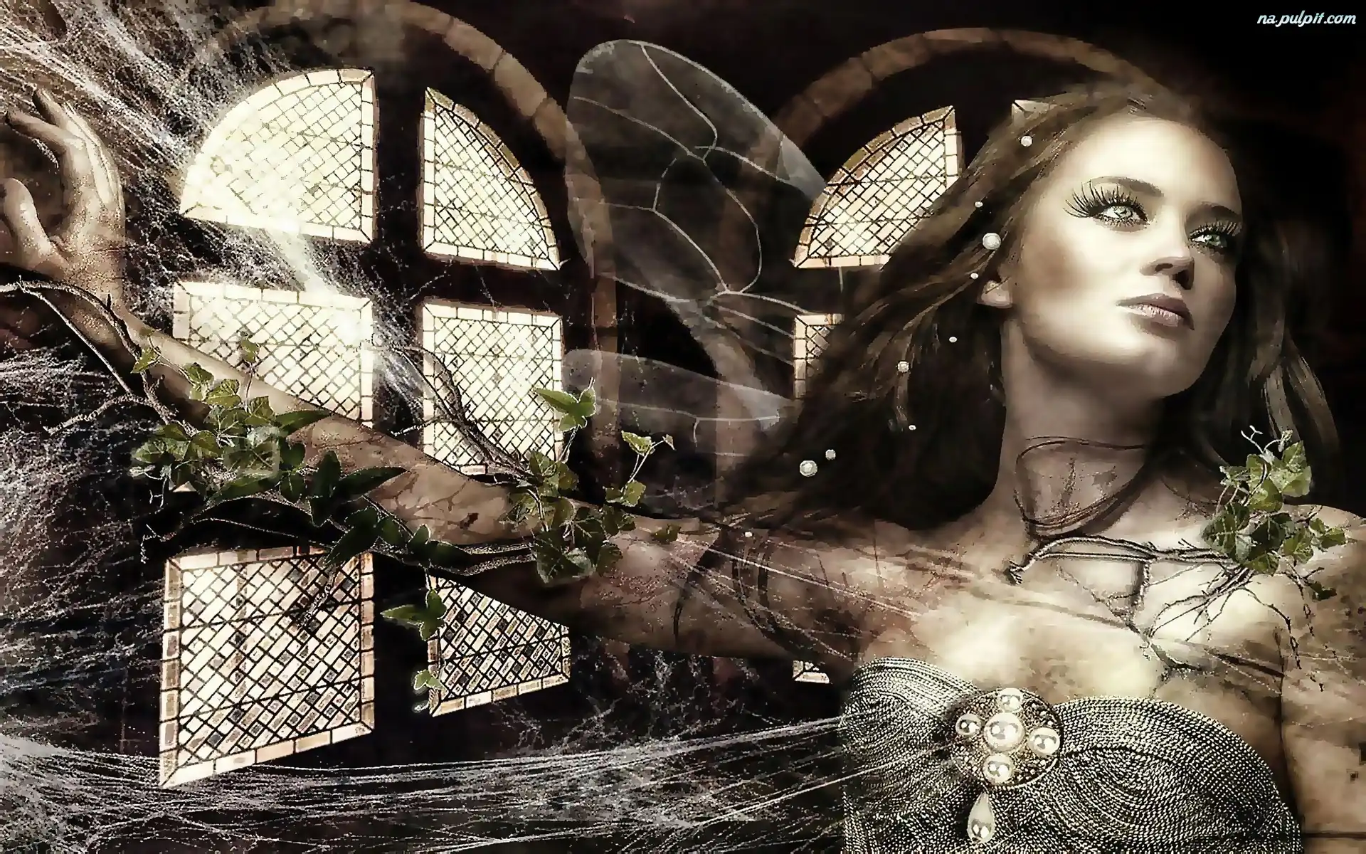 Pajęczyna, Kobieta, Okaleczona, Motyl Na Pulpit
