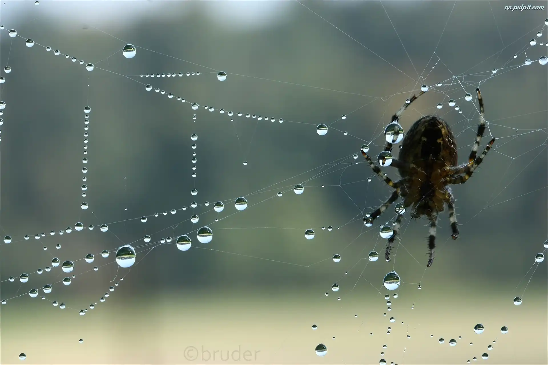 Pajęczyna, Krople, Pająk, Deszcz Na Pulpit