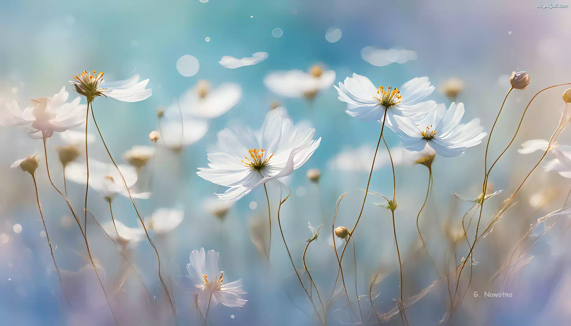 Białe, Kwiaty, Grafika, Pąki