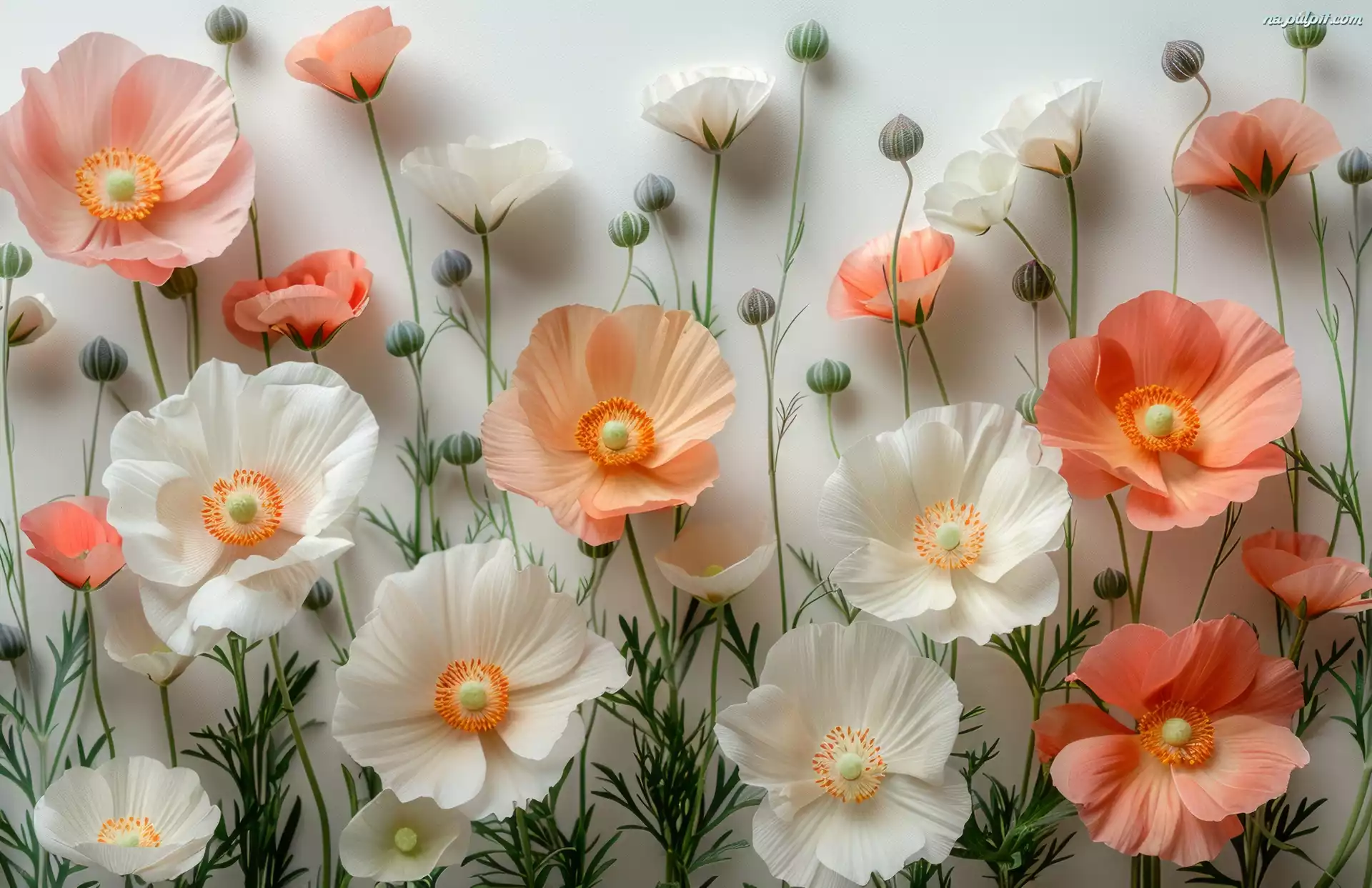Białe, Pomarańczowe, Kwiaty, Pąki Na Pulpit