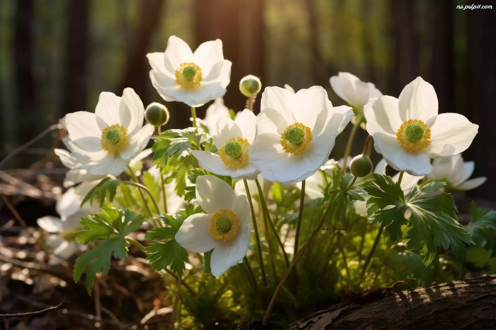 Kwiaty, Zawilce, Białe, Pąki