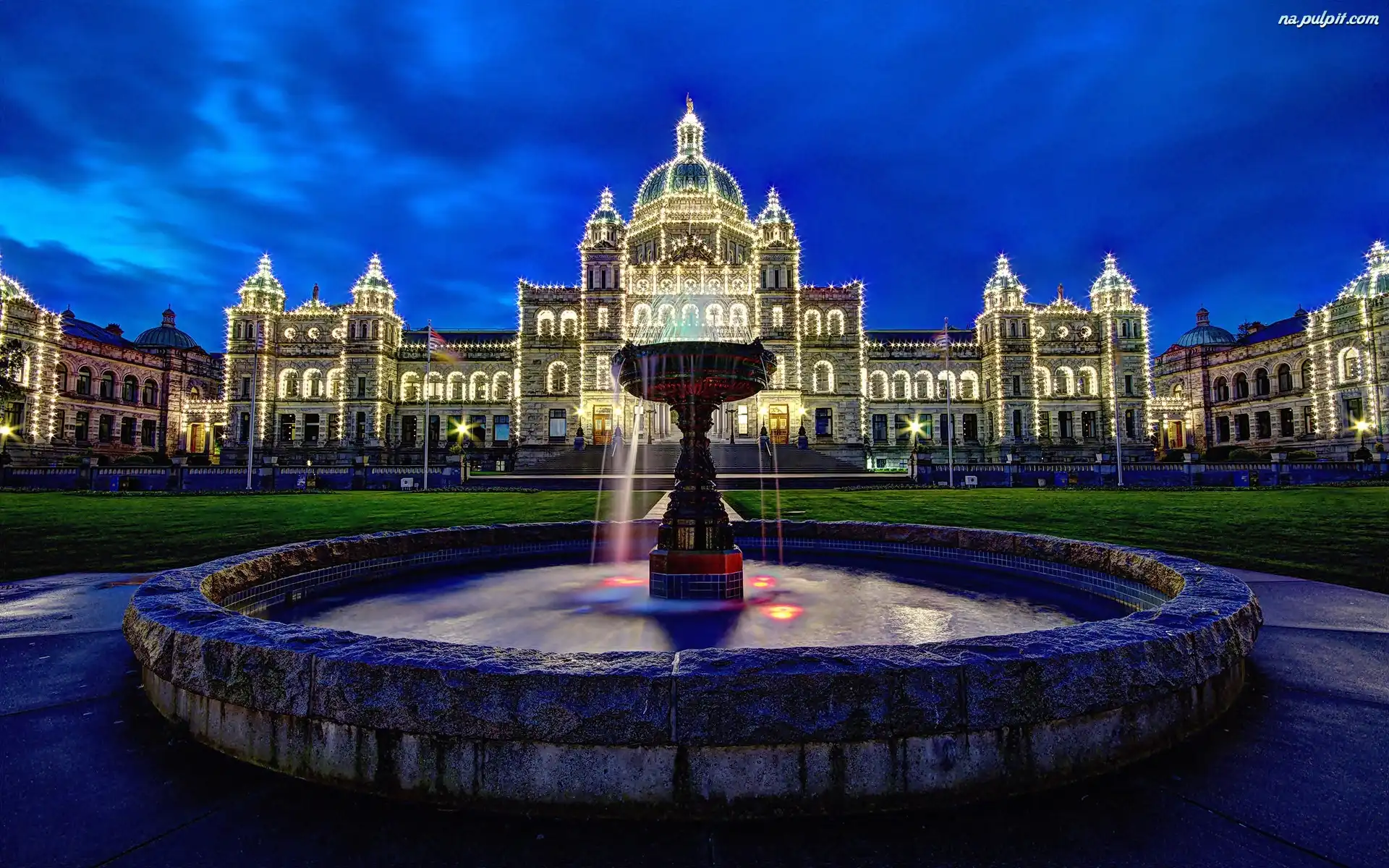 Pałac, Fontanna, Noc, Oświetlony Na Pulpit