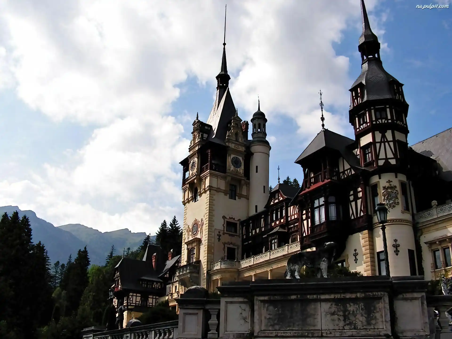 Pałac, Las, Obłoki, Peles, Sinaia, Góry Na Pulpit