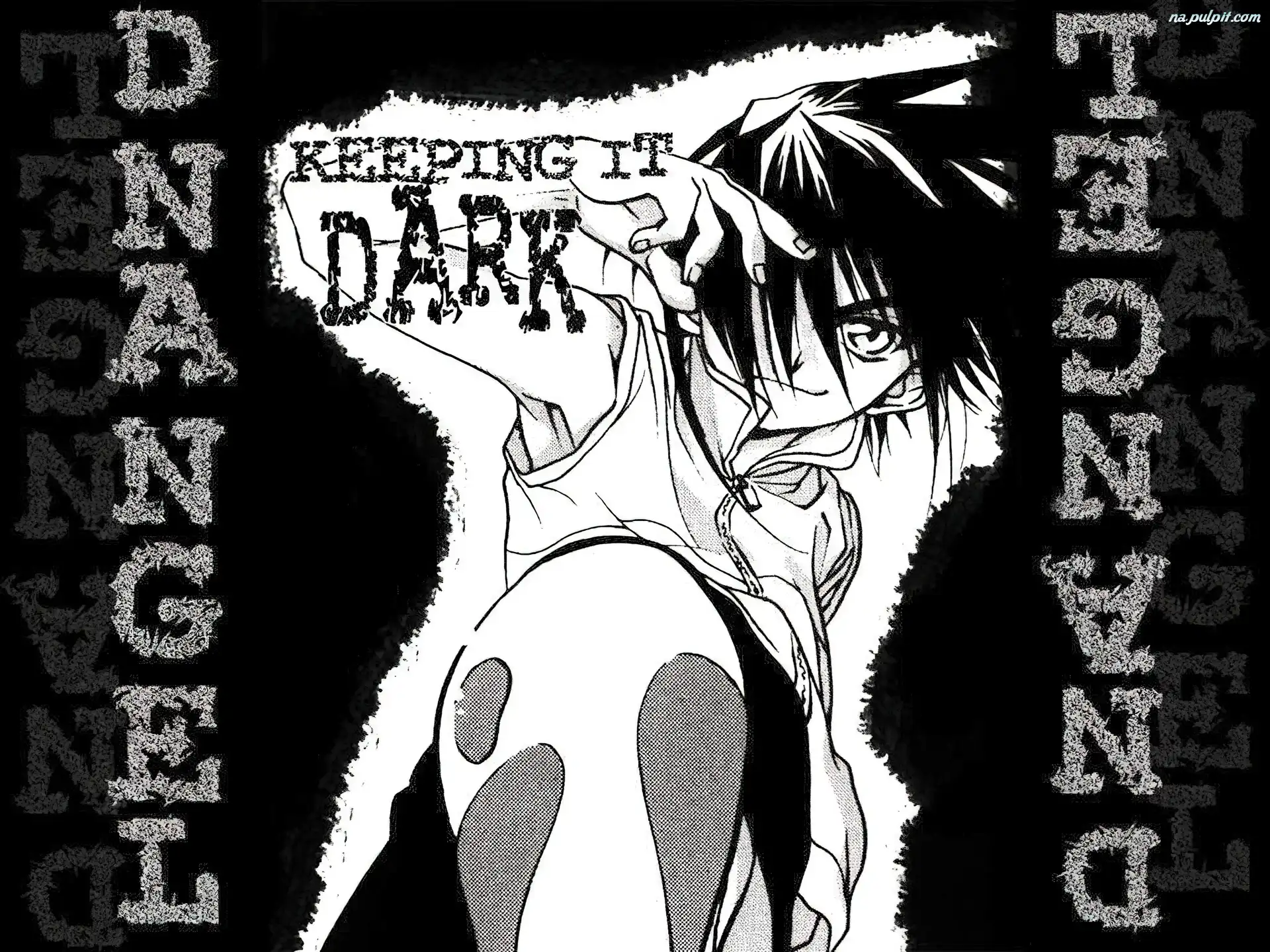 chłopak, palce, napis, D N Angel, ciemno Na Pulpit