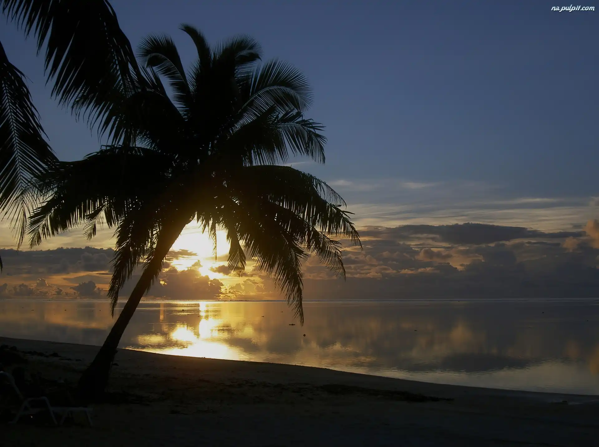 Palma, Słońca, Zachód, Chmury, Morze Na Pulpit
