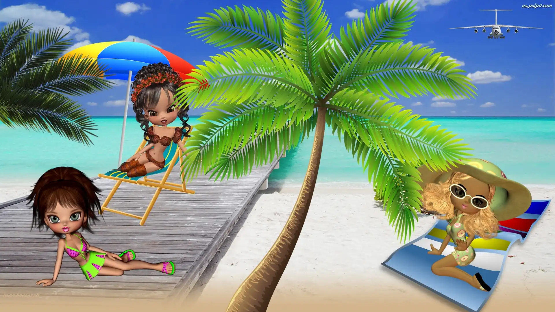 Palma, Plaża, Grafika, Laleczki Na Pulpit