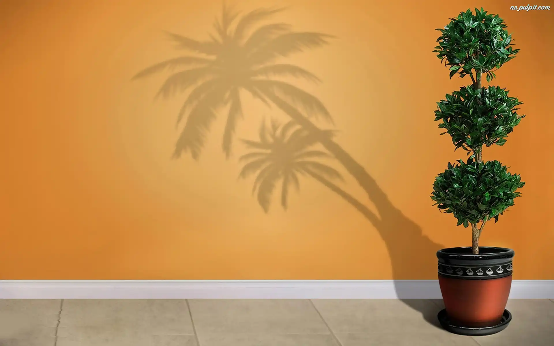Palma, Donica, Kwiat, Cień