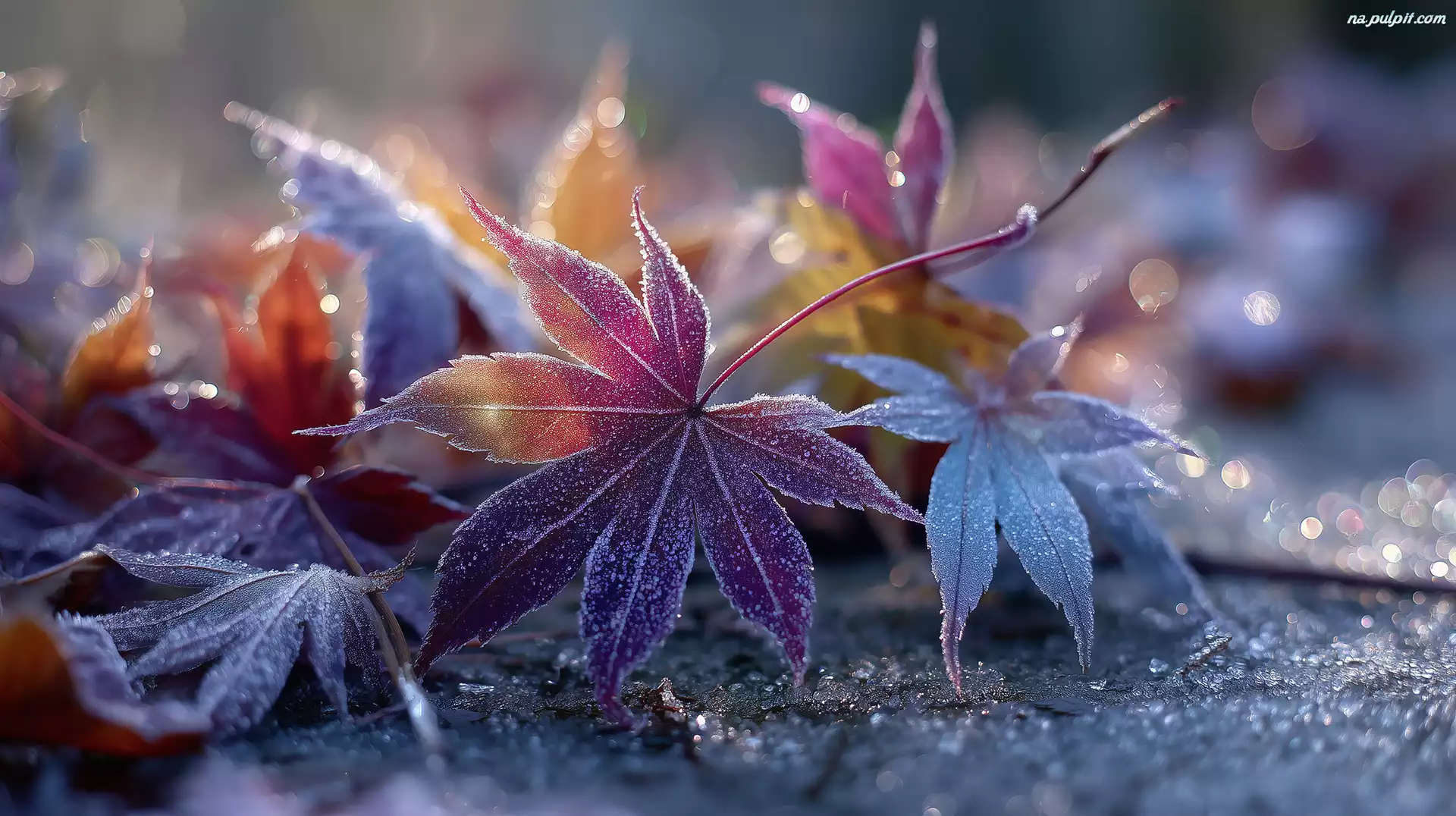 Oszronione, Liście, Klon palmowy, Grafika AI Na Pulpit