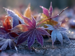 Oszronione, Liście, Klon palmowy, Grafika AI
