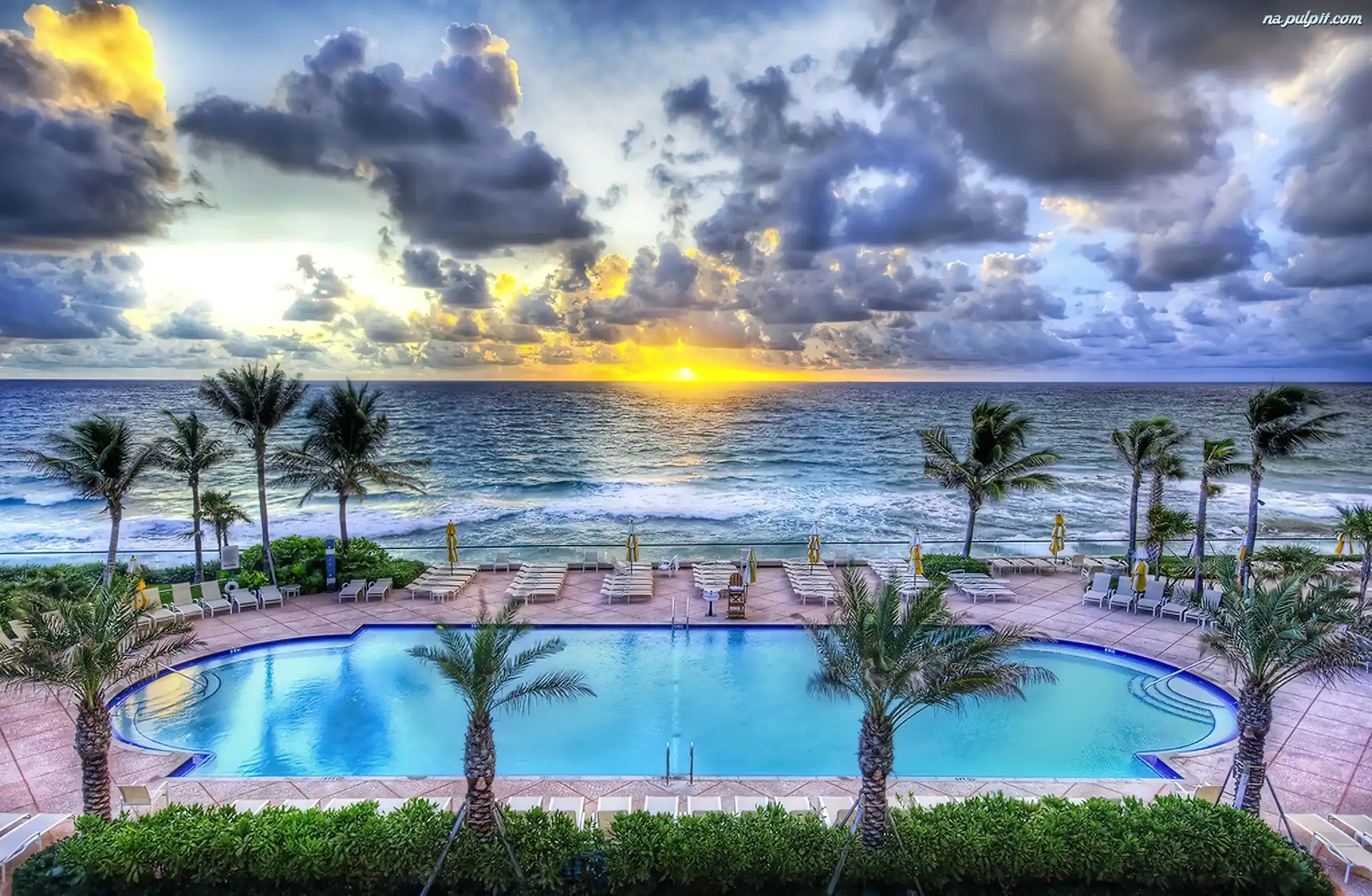 Palmy, Zachód, Basen, Słońca Na Pulpit