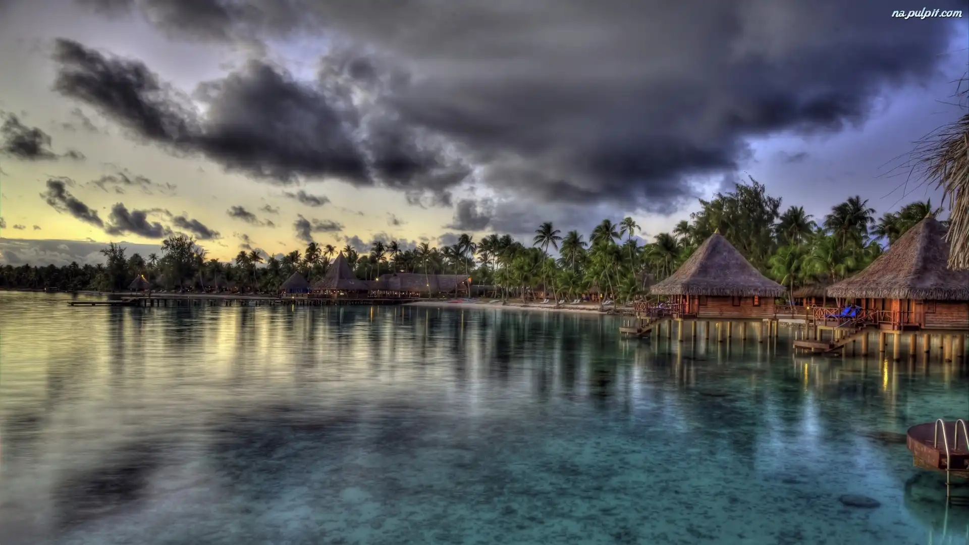 Palmy, Morze, Chmury, Domki Na Pulpit