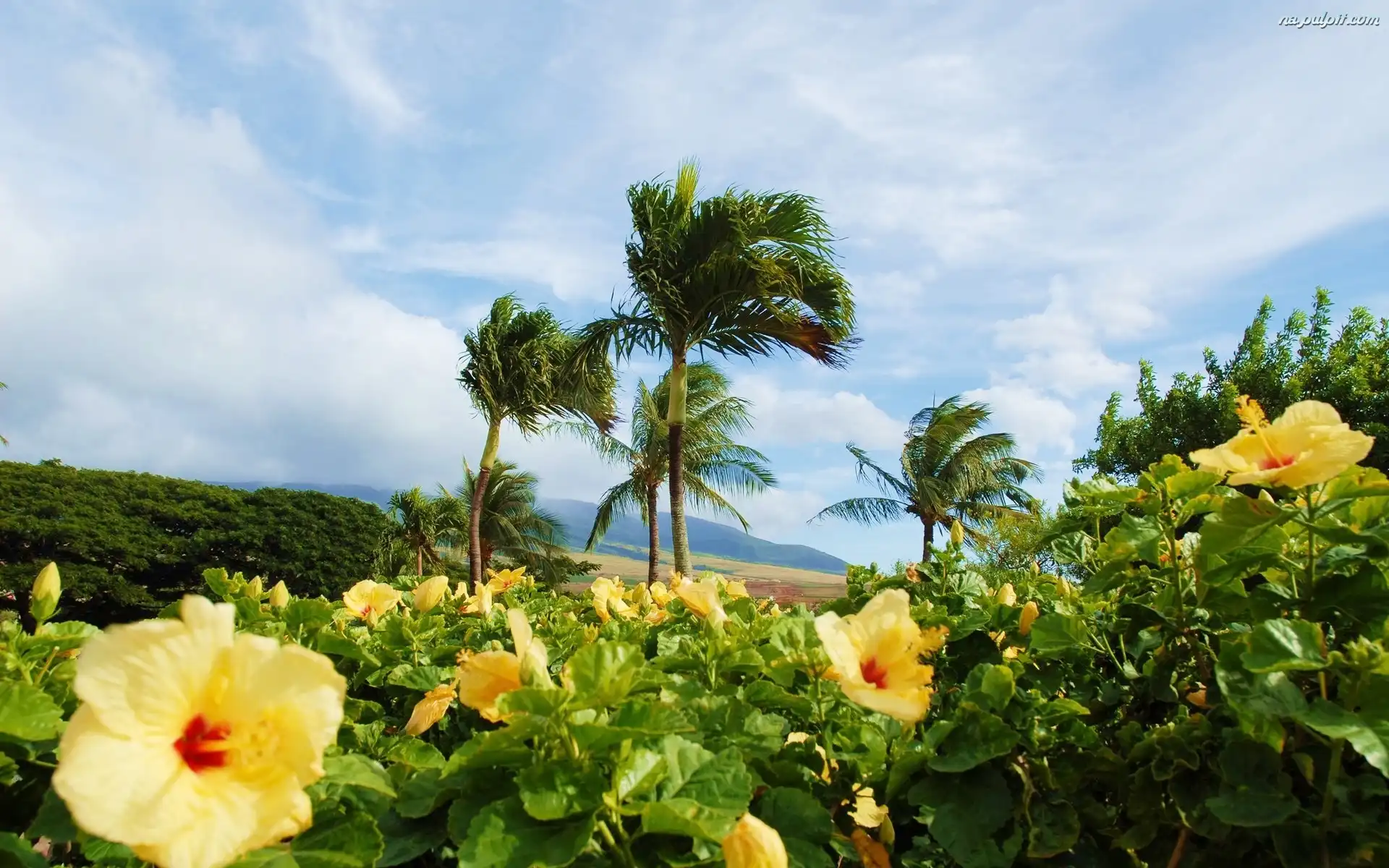 Hibiskus, Palmy, Kwiaty Na Pulpit