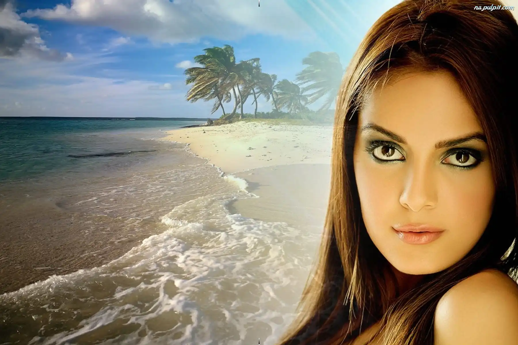Palmy, Makijaż, Kobieta, Plaża Na Pulpit
