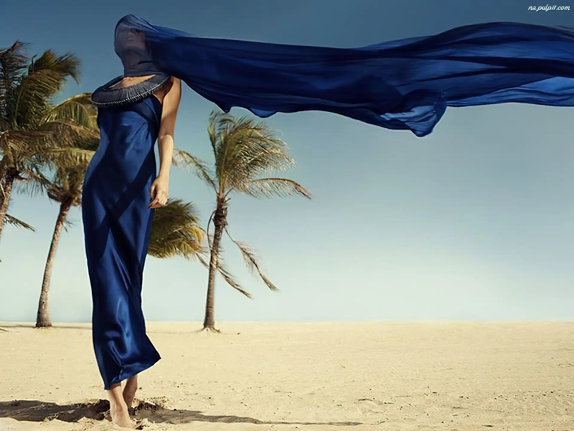 Palmy, Niebieska, Kobieta, Suknia