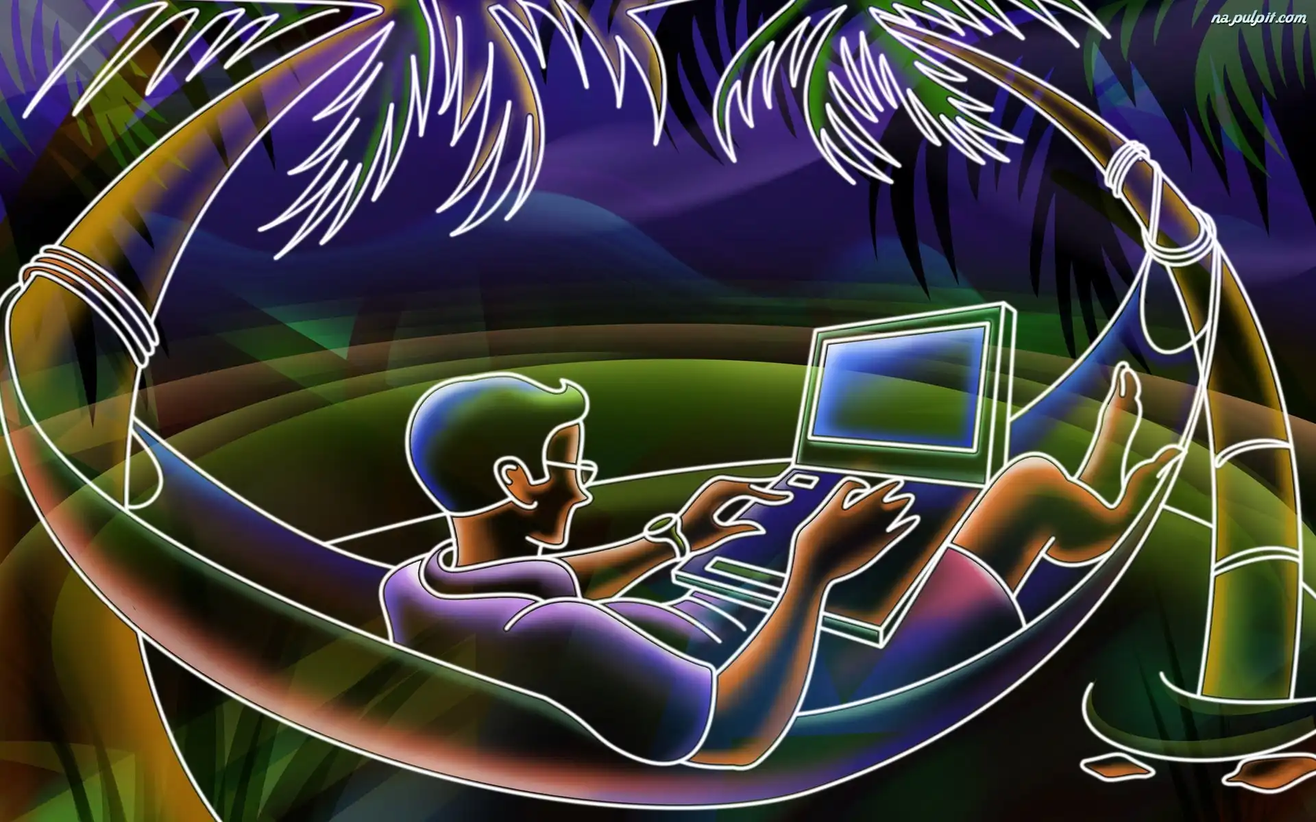 Laptop, Palmy, Hamak Na Pulpit