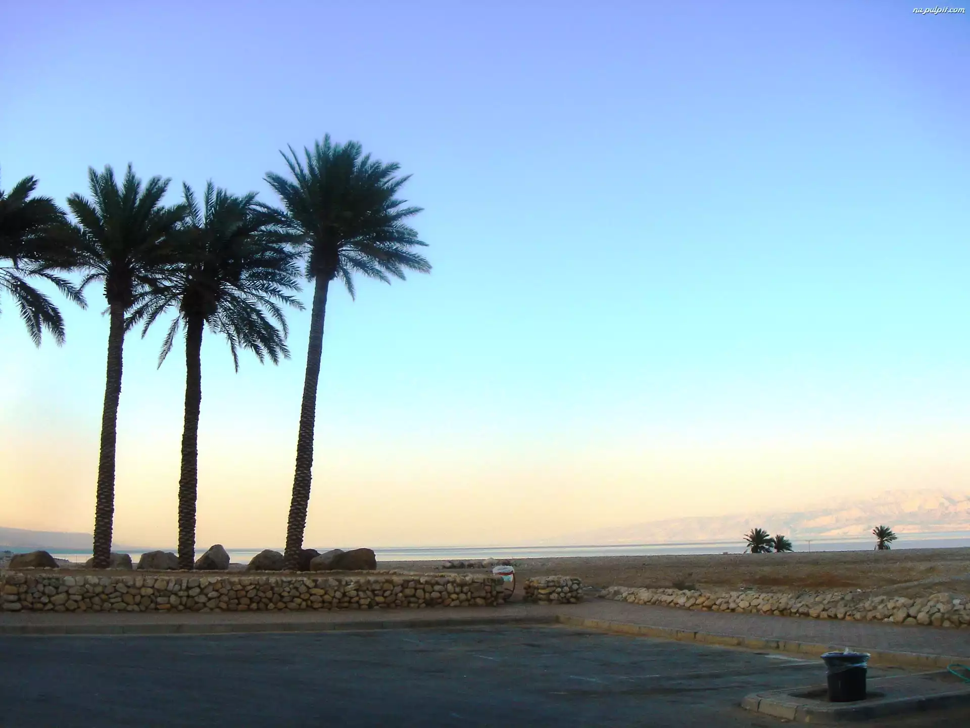 Palmy, Morze, Lato, Wybrzeże Na Pulpit