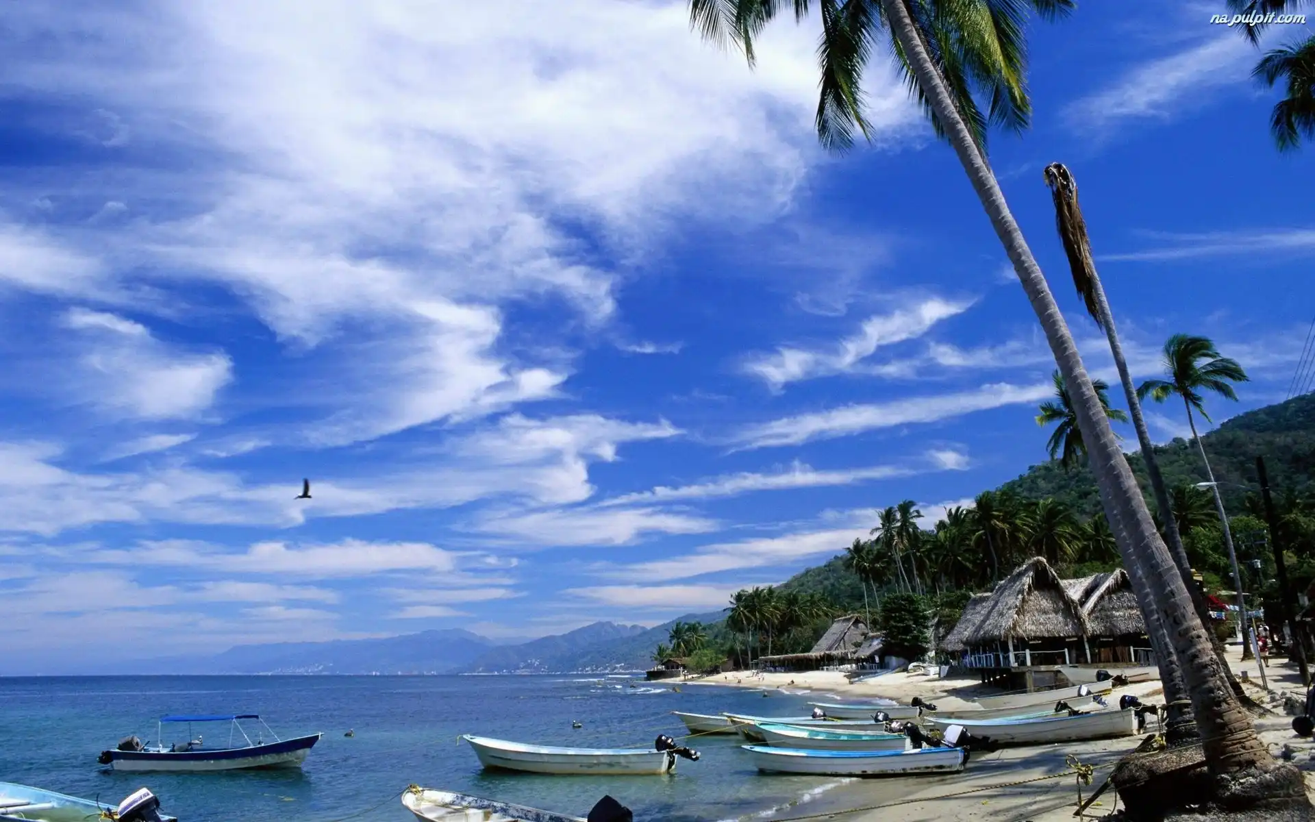 Palmy, Łodzie, Morze, Domki