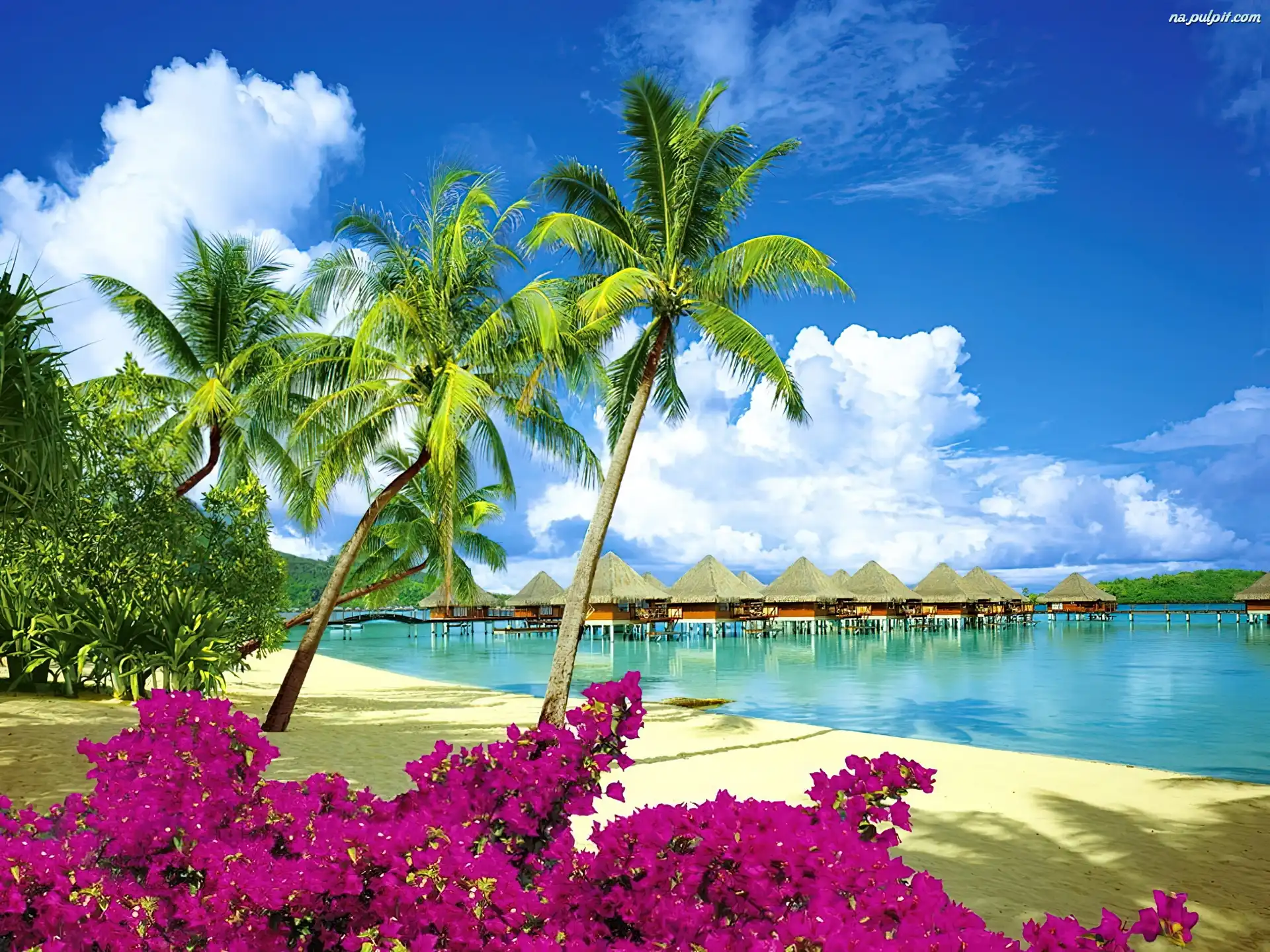 Palmy, Plaża, Morze, Kwiaty Na Pulpit