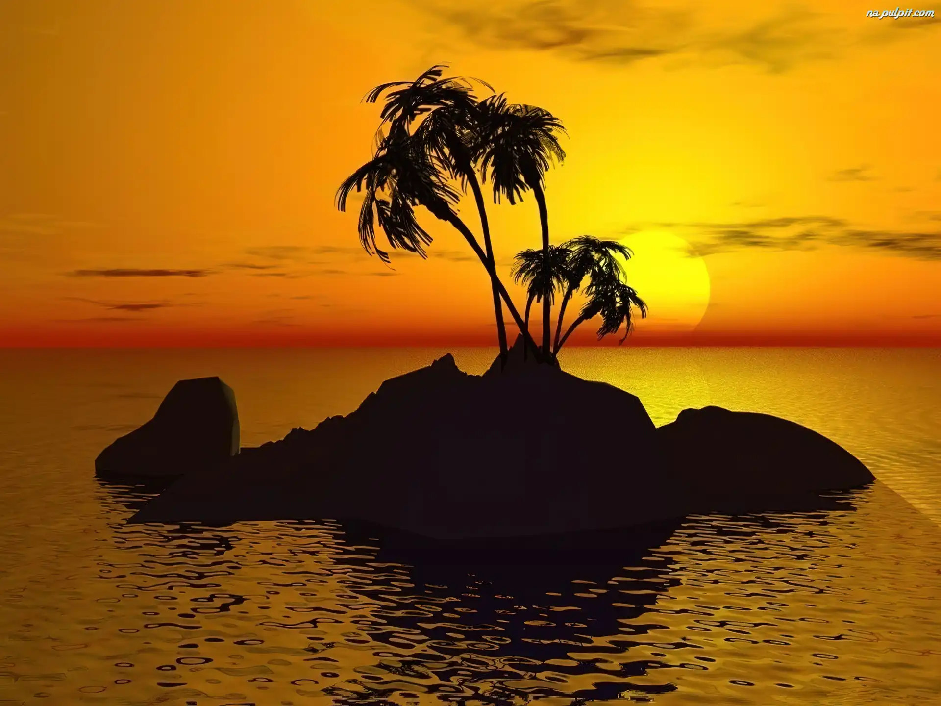 Palmy, Słońca, Zachód, Morze, Wyspa Na Pulpit