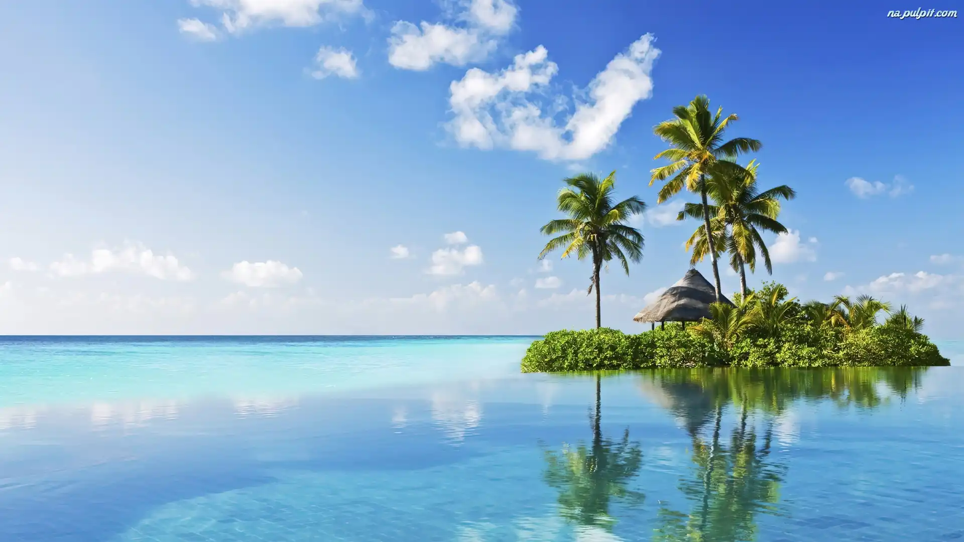 Palmy, Zielona, Morze, Wysepka