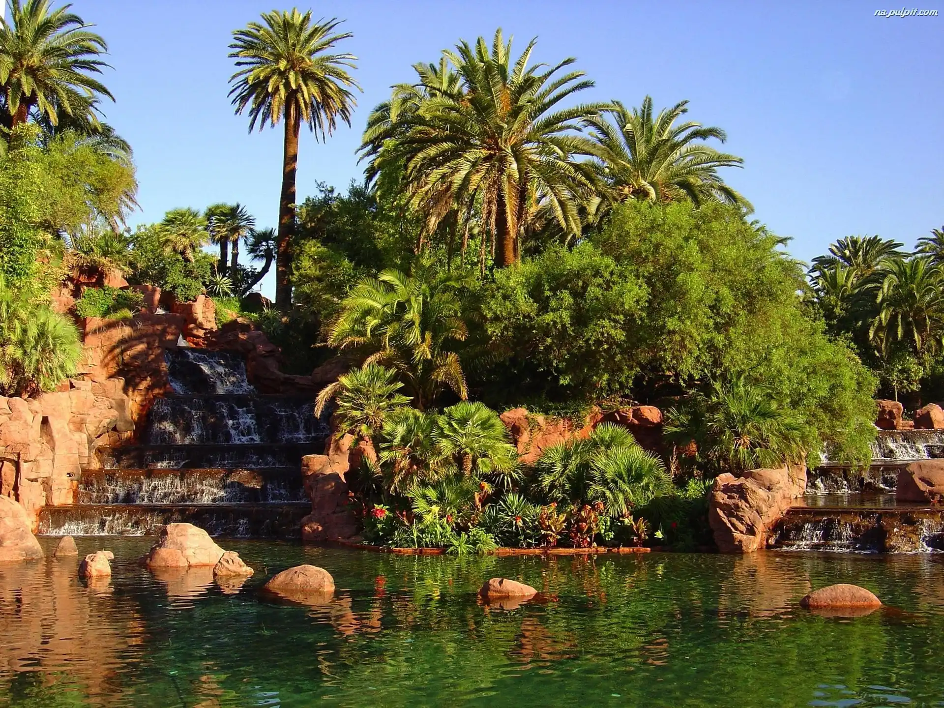 Palmy, Kaskady, Ogród, Staw Na Pulpit
