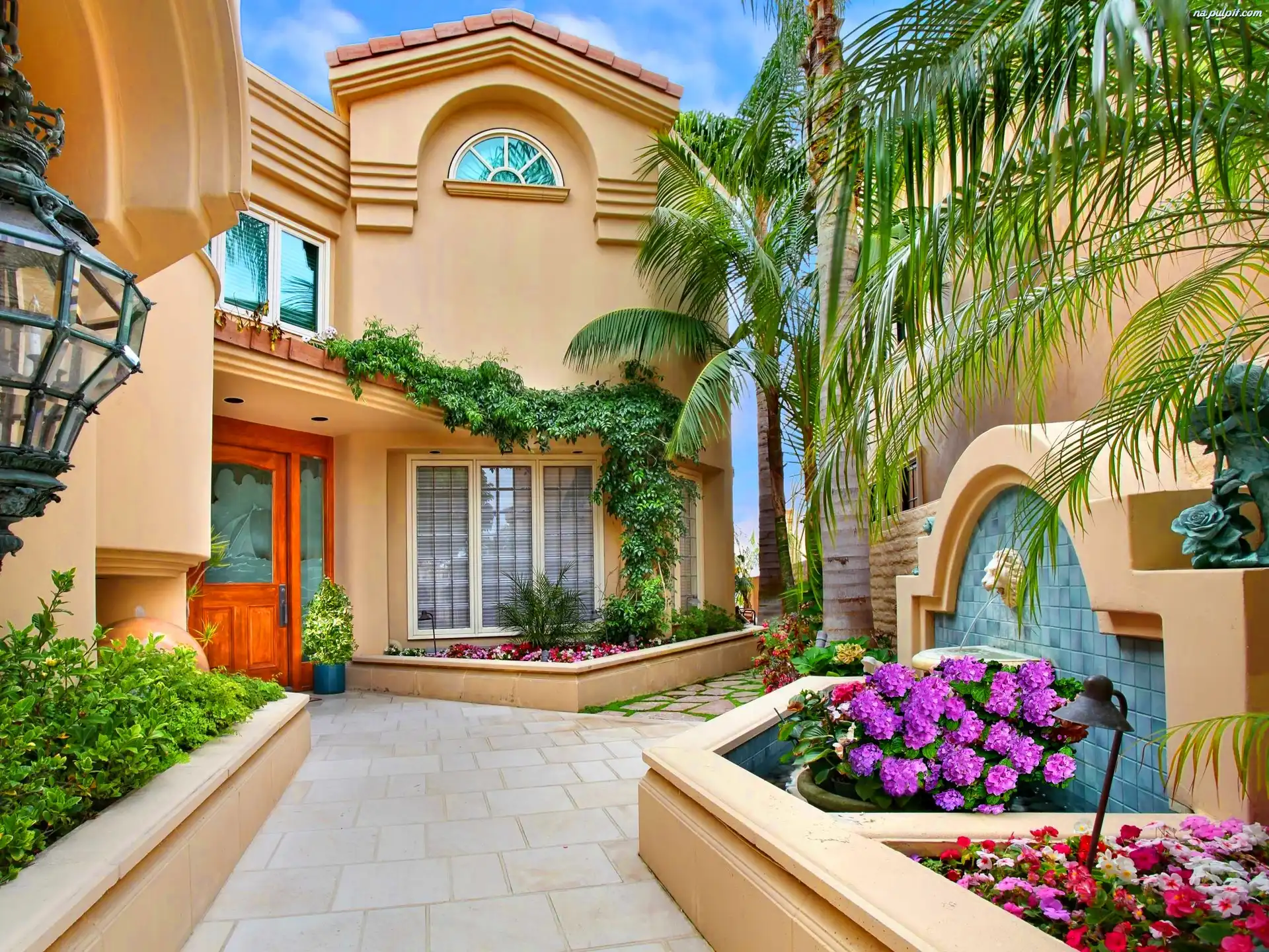 Palmy, Dom, Patio, Kwiaty Na Pulpit