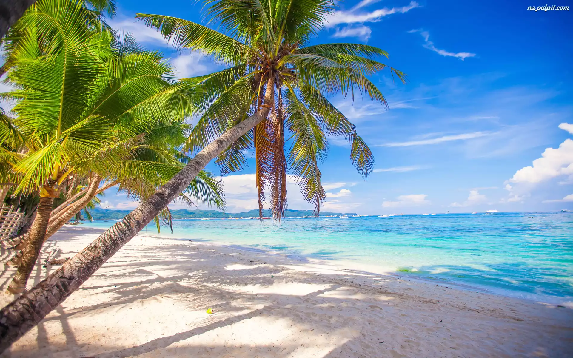Morze, Palmy, Plaża, Tropiki, Cień Na Pulpit