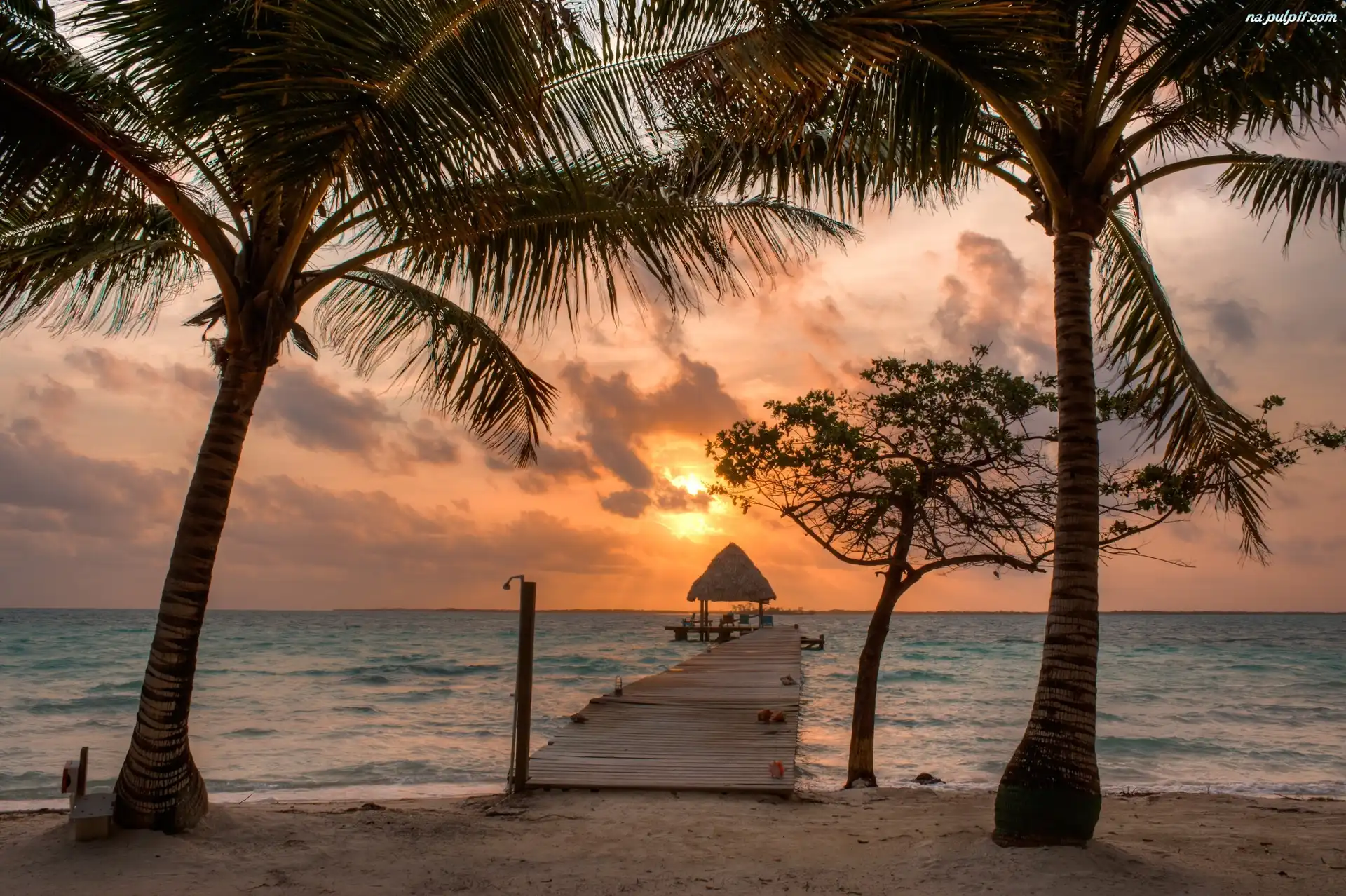 Palmy, Morze, Zachód słońca, Molo Na Pulpit