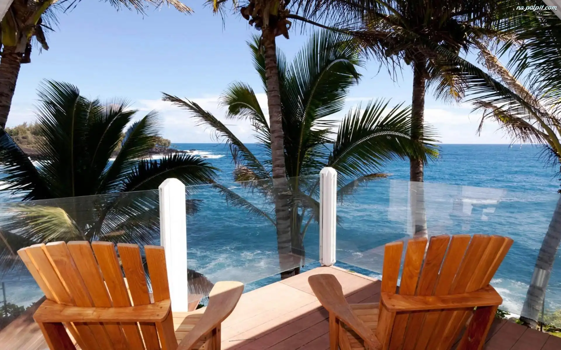 Palmy, Krzesła, Taras, Morze Na Pulpit