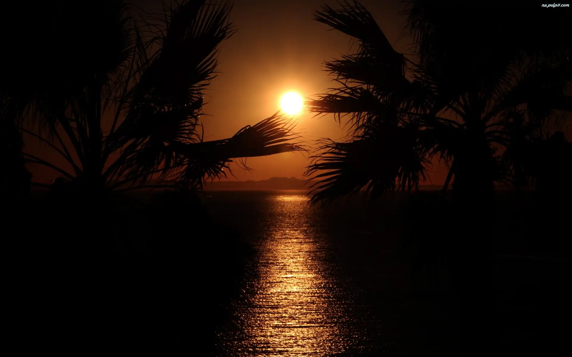 Palmy, Słońca, Zachód, Morze Na Pulpit