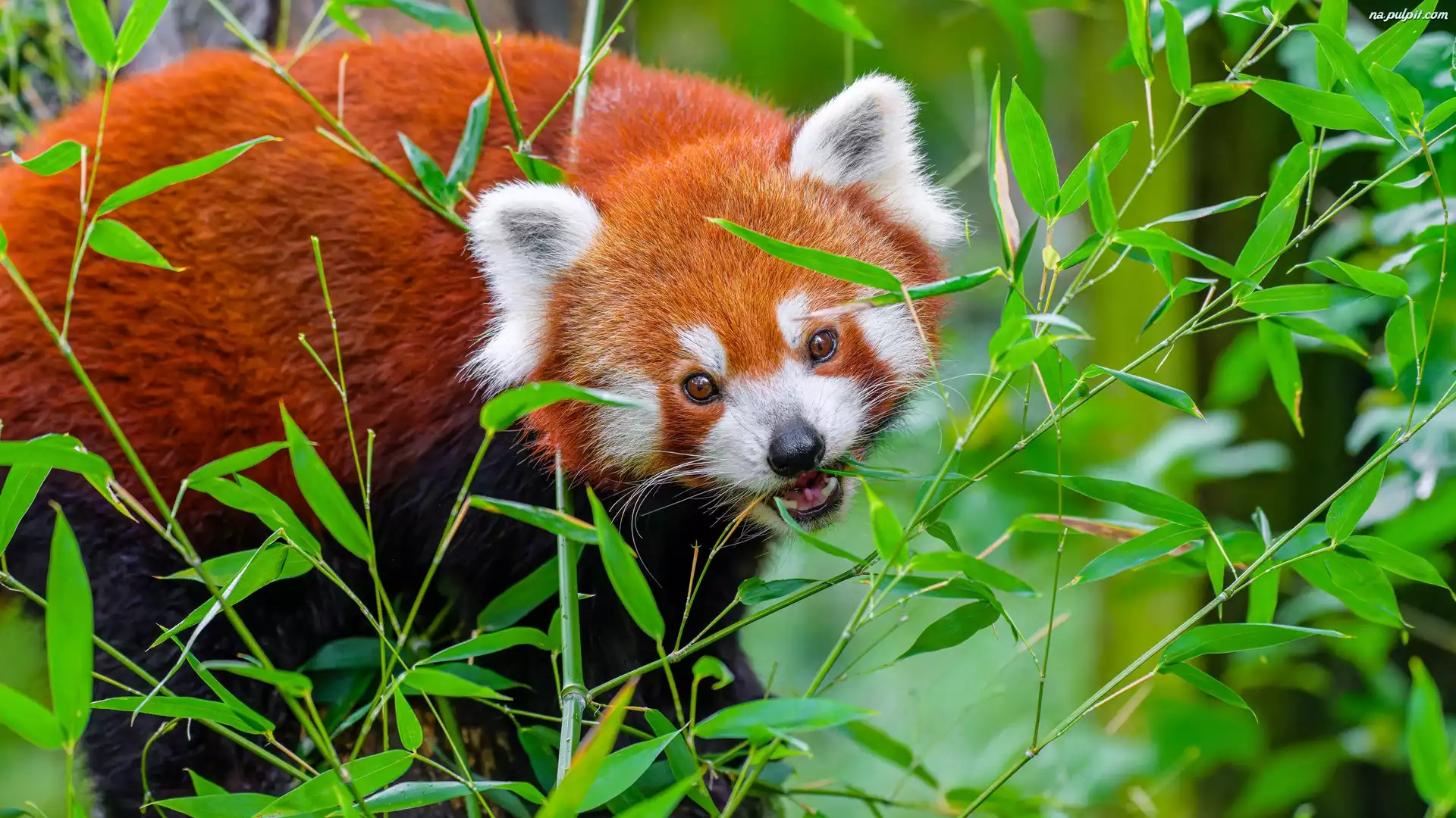 Pandka ruda, Czerwona panda, Gałązki, Liście
