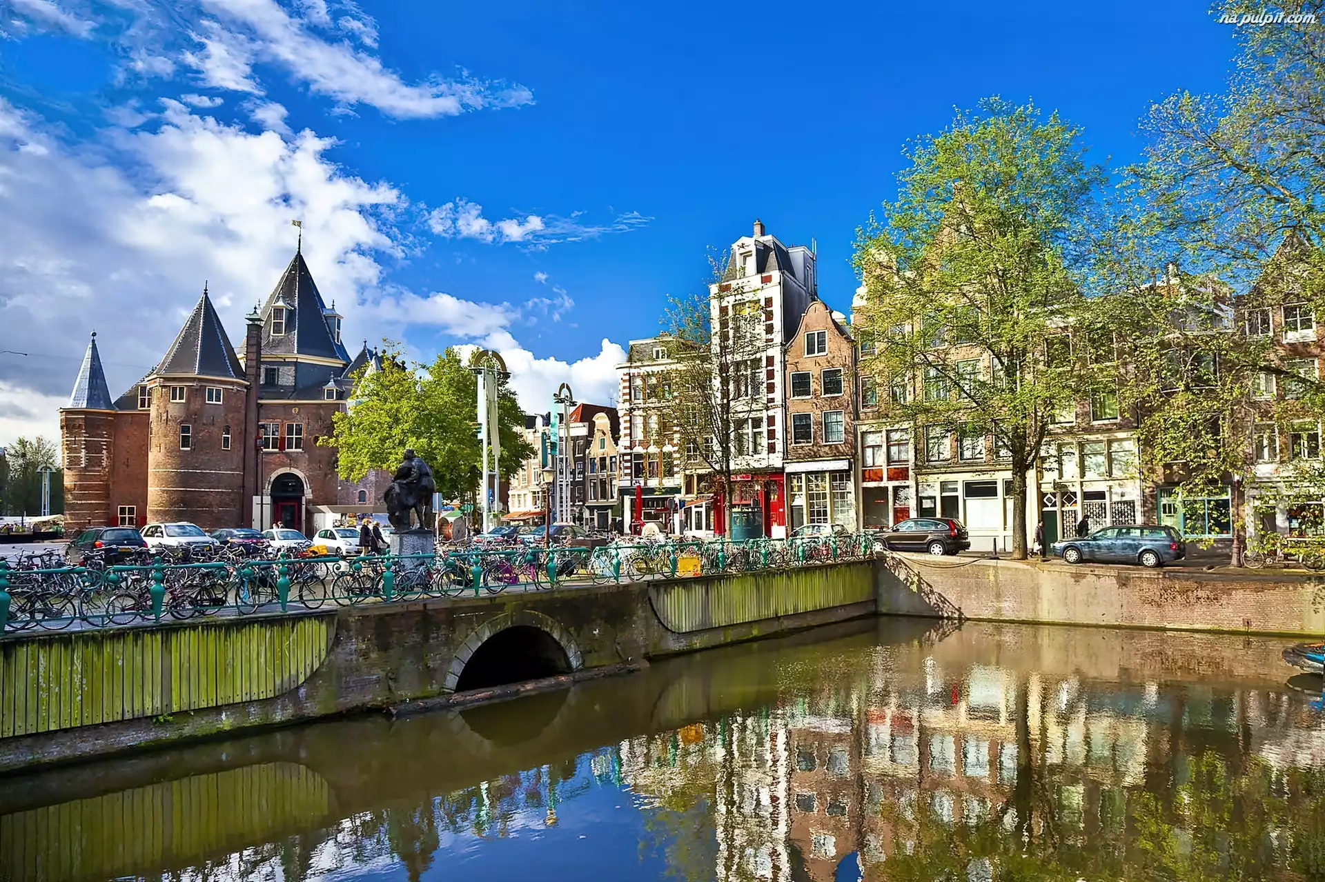 Panorama, Most, Rowery, Miasta, Amsterdam, Kanał Na Pulpit