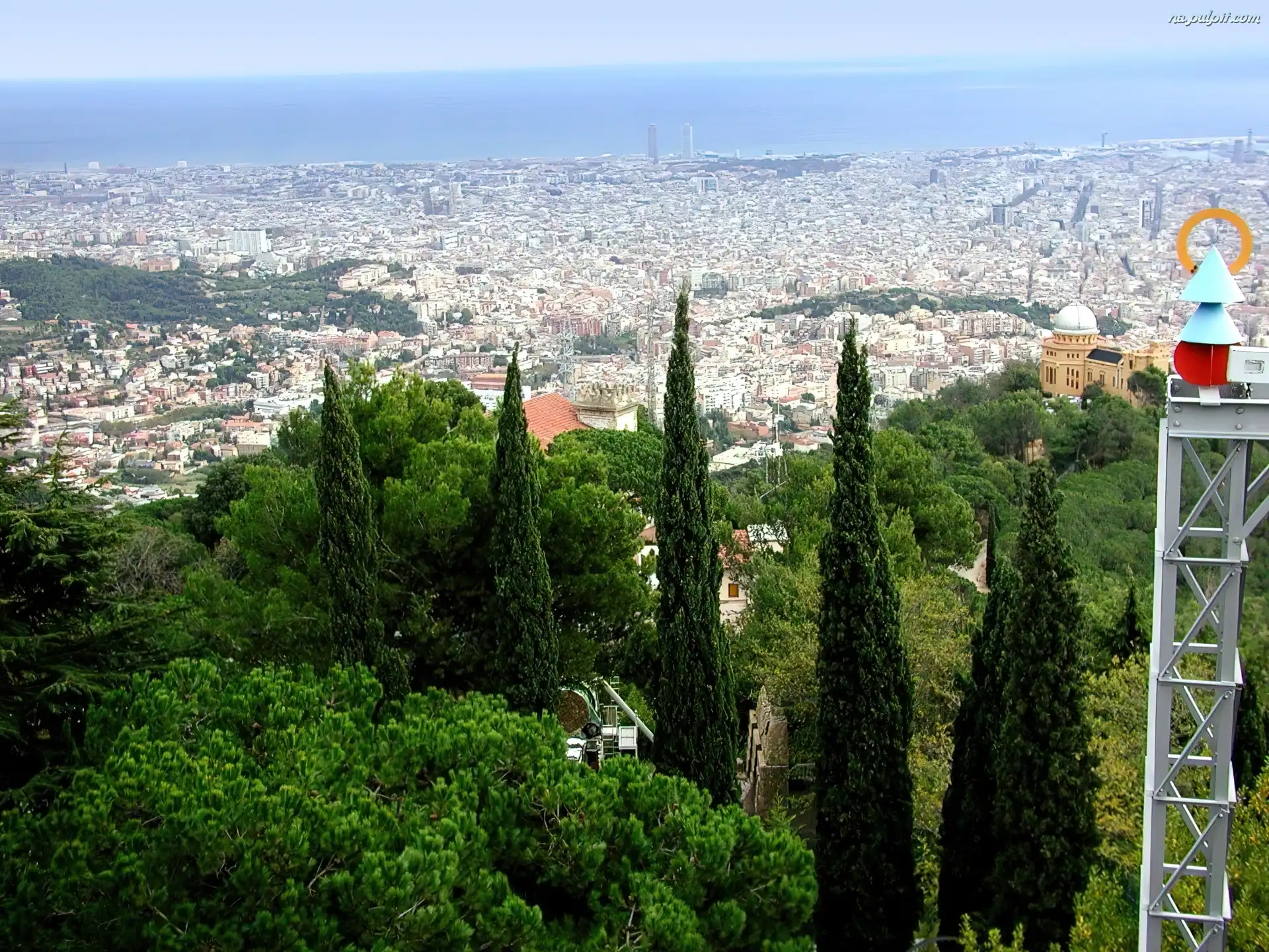 Panorama, Hiszpania, Barcelona, Drzewa Na Pulpit