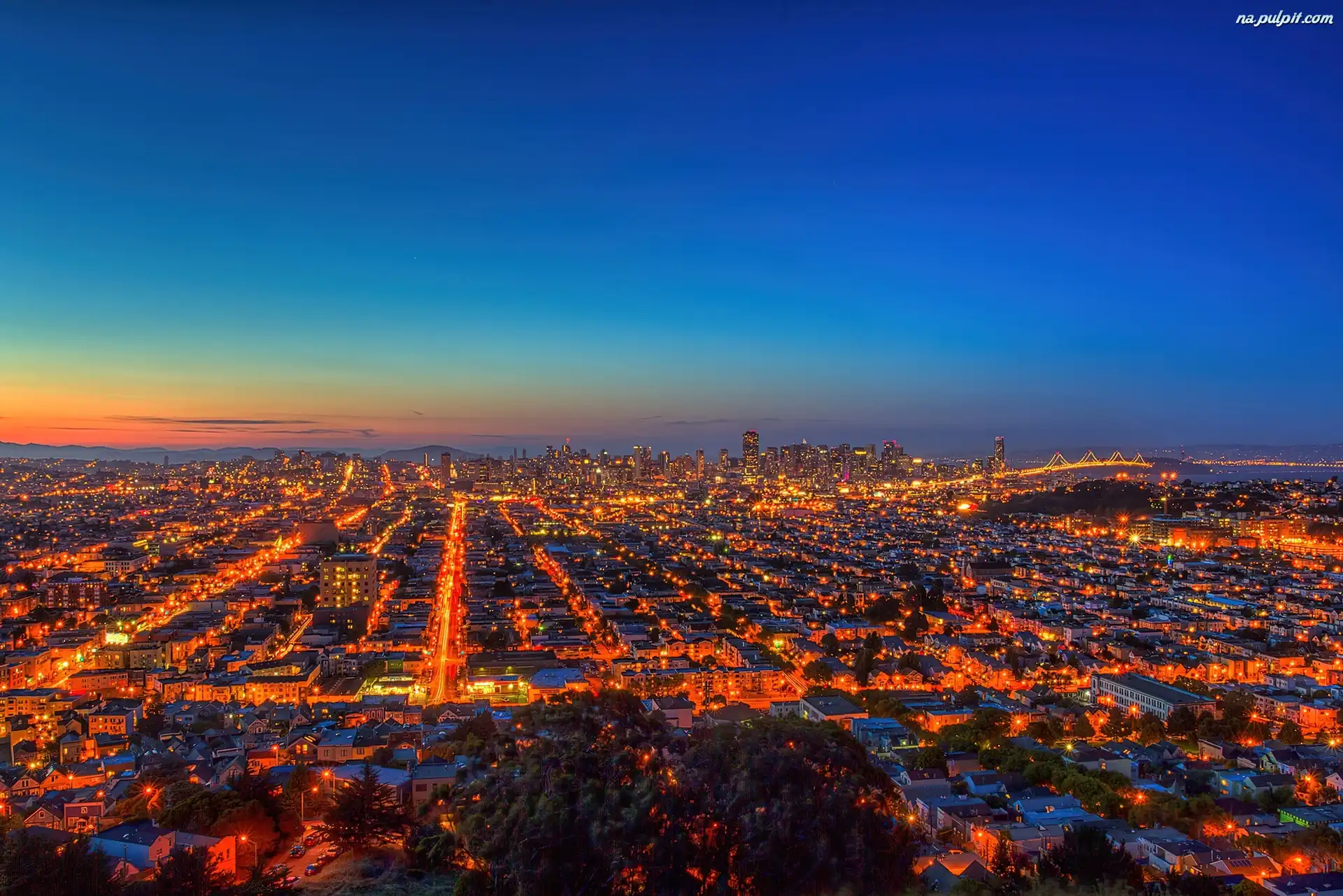 Panorama, Miasto, San Francisco, Noc Na Pulpit