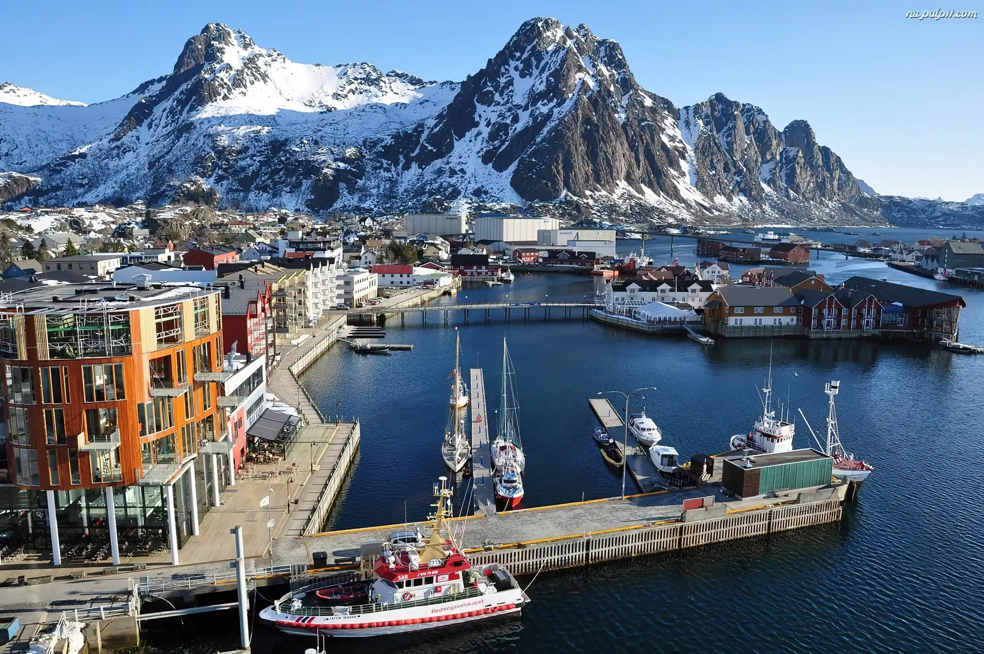 Panorama, Łodzie, Jachty, Svolvaer, Lofoty, Przystań Na Pulpit