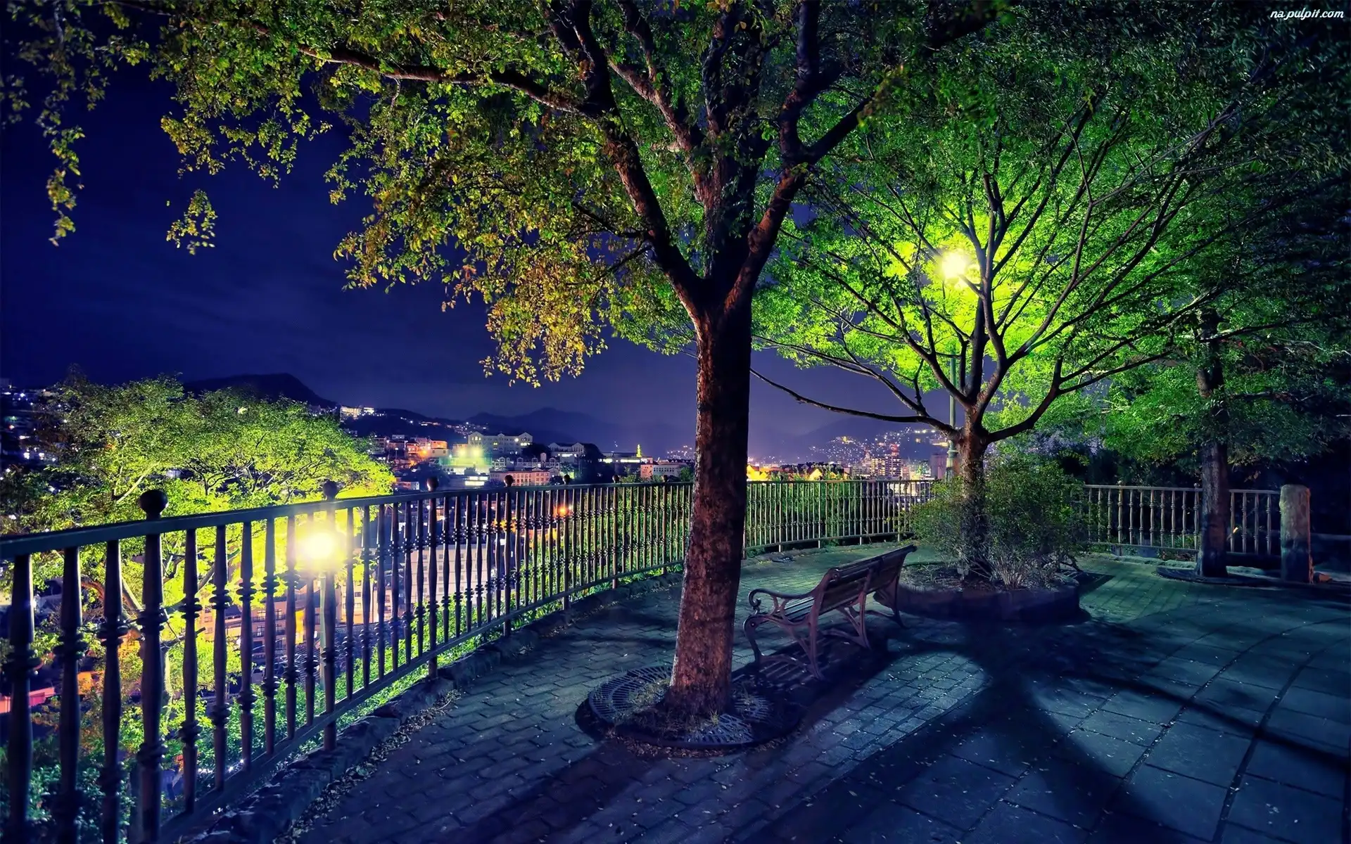 Ławka, Miasta, Panorama, Drzewa Na Pulpit