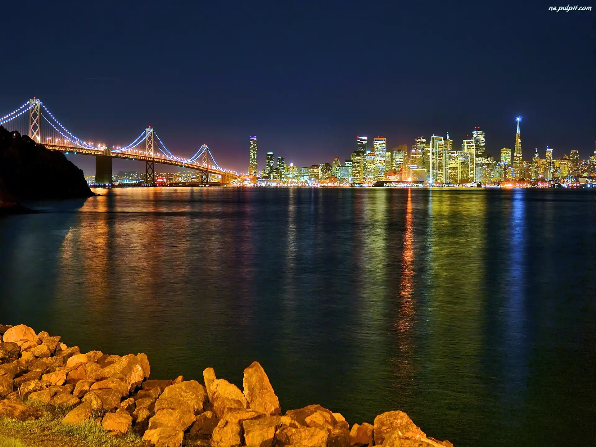 Światła, Most, Miasta, Panorama, Noc Na Pulpit