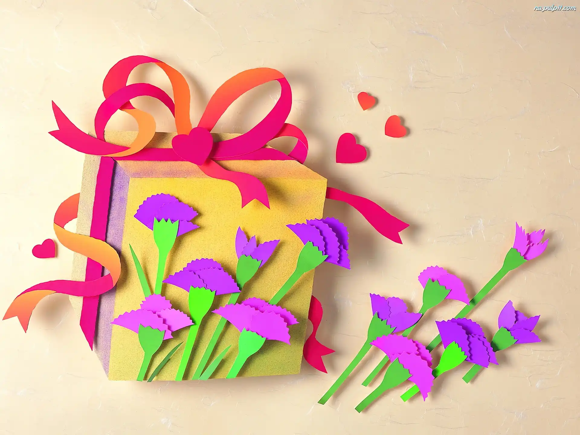 Papier Art, Goździki, Kwiaty, Prezent Na Pulpit