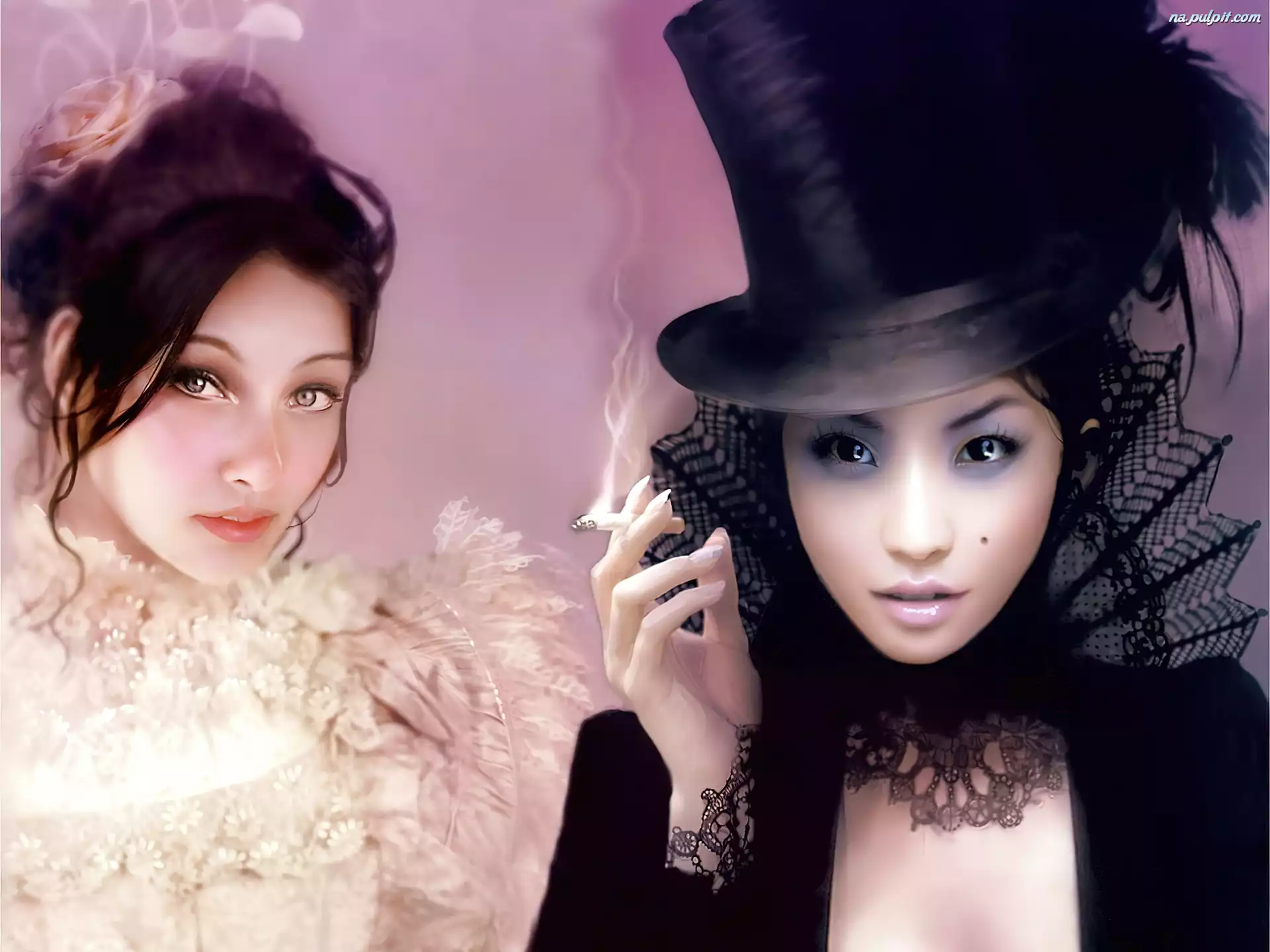 Papieros, Kobiety, Dwie, Cylinder Na Pulpit