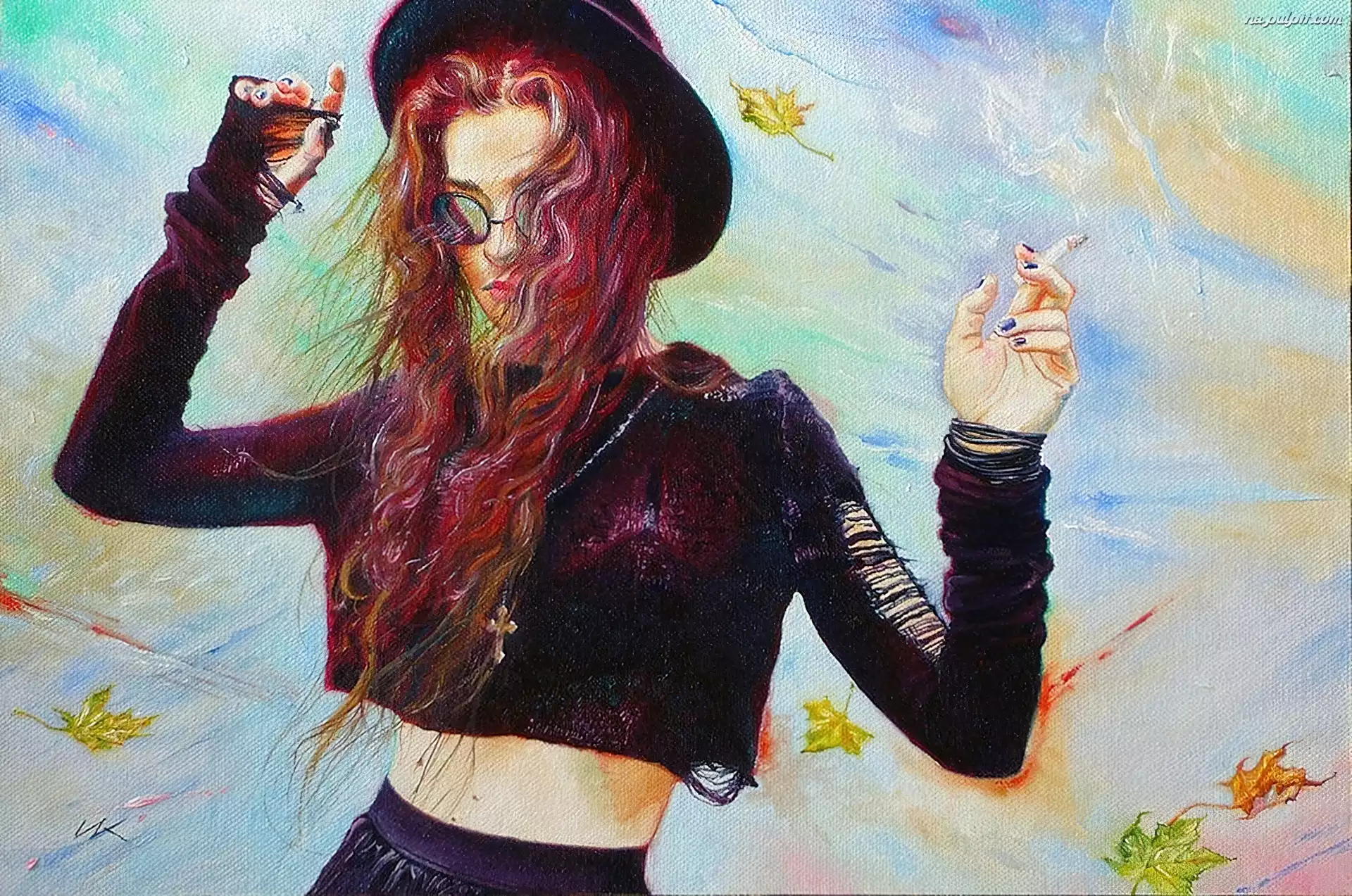 Papieros, Okulary, Kobieta, Włodzimierz Kukliński, Kapelusz
