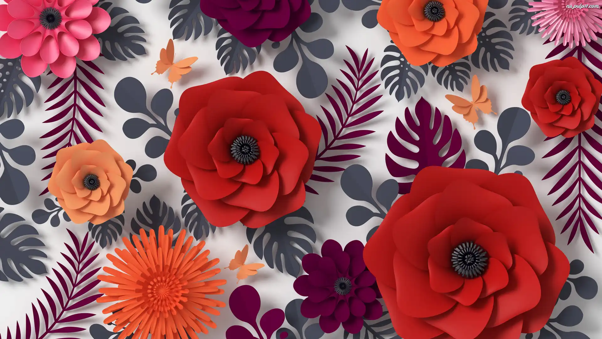 Papierowe, Motyle, Kwiaty, Wycinanki