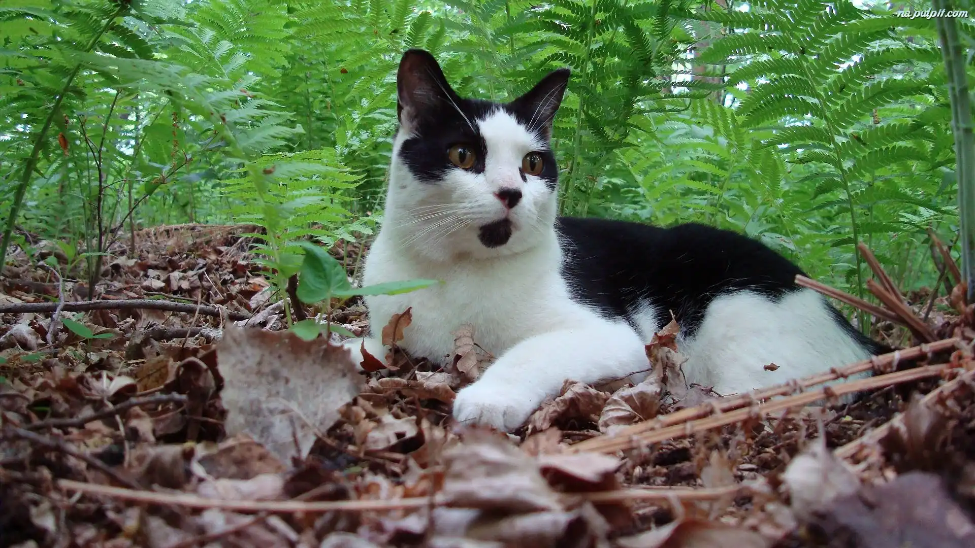 Paproć, Czarny, Biało, Kotek Na Pulpit