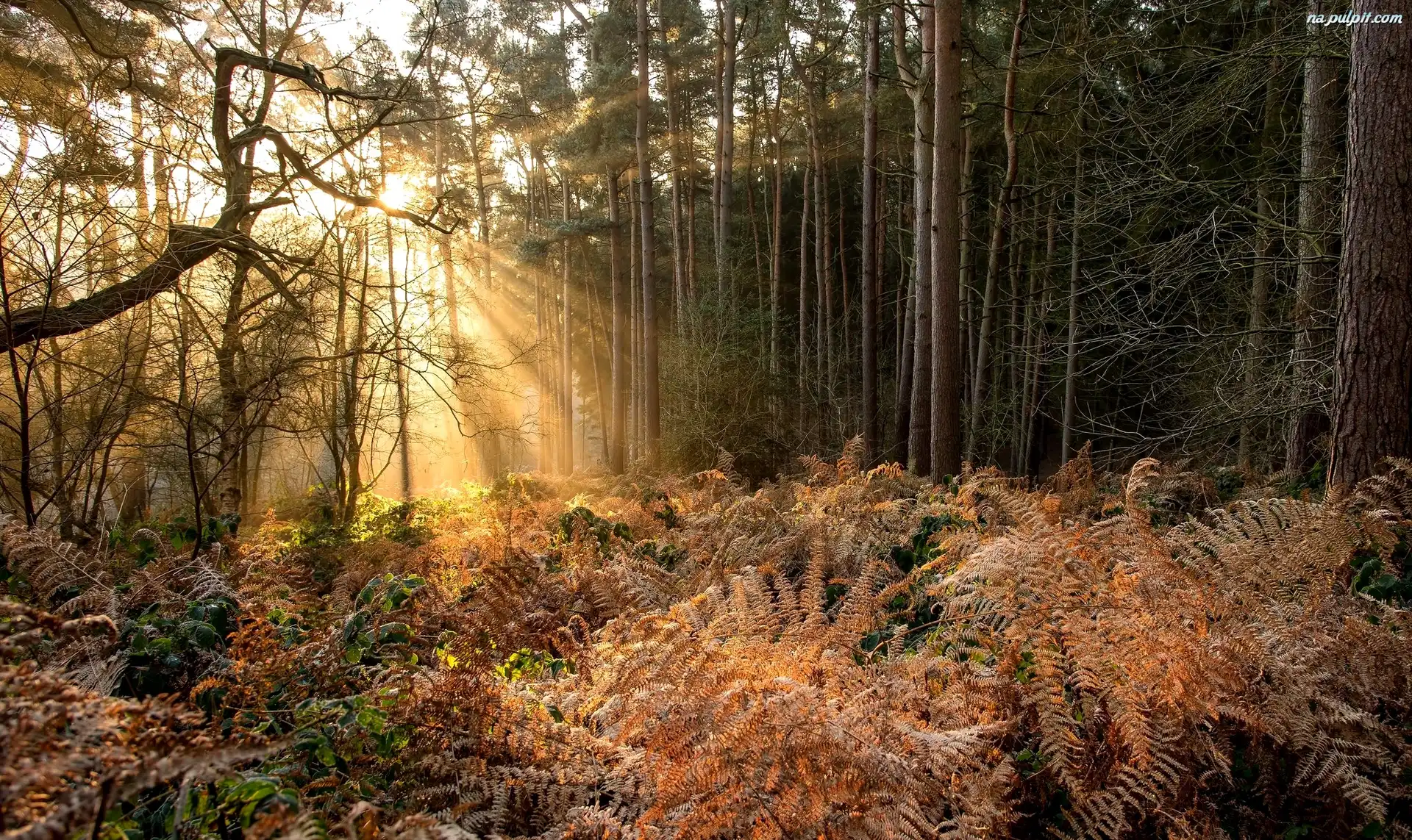 Paprocie, Las, Promienie Słońca Na Pulpit