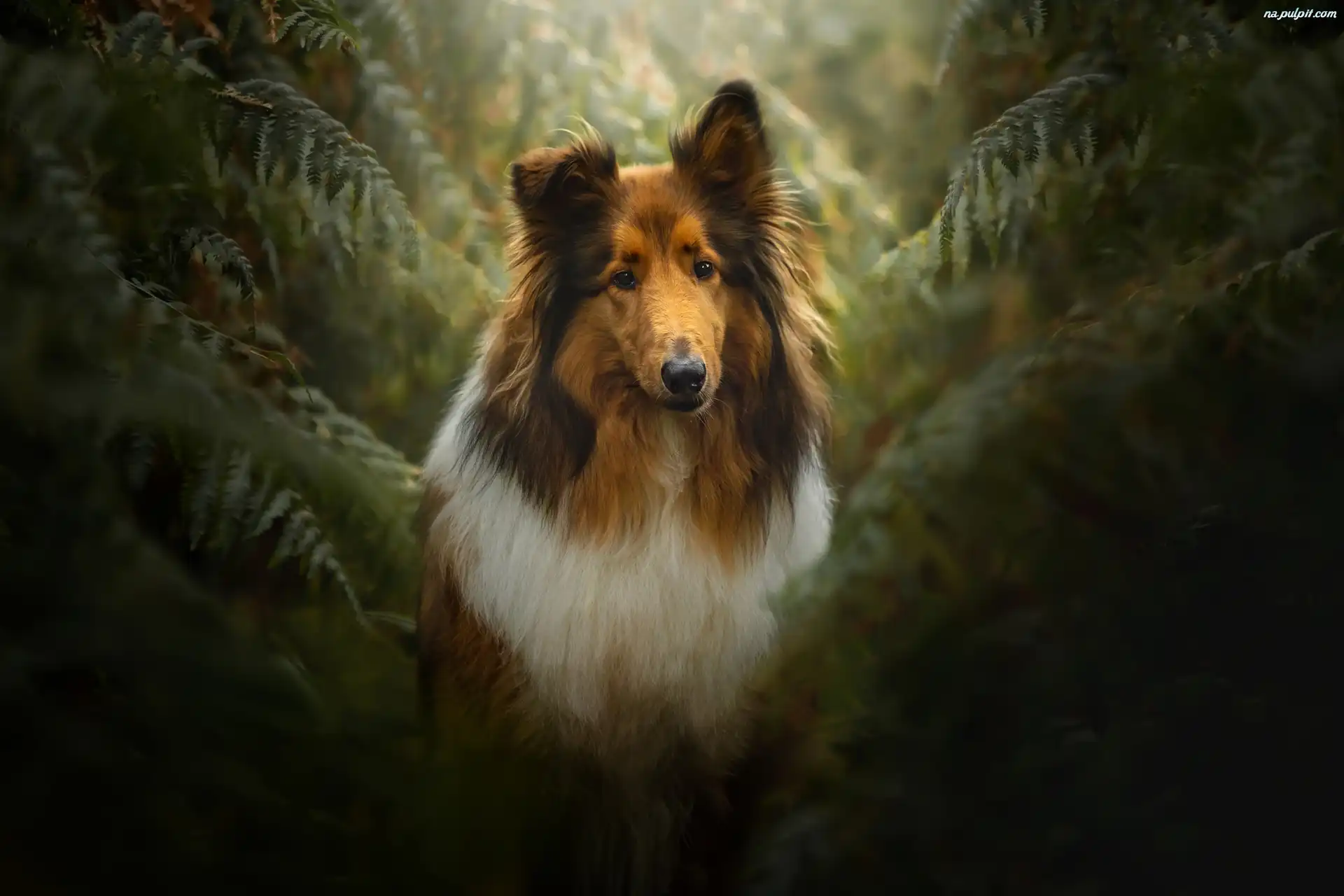 Paprocie, Pies, Owczarek szkocki długowłosy Na Pulpit