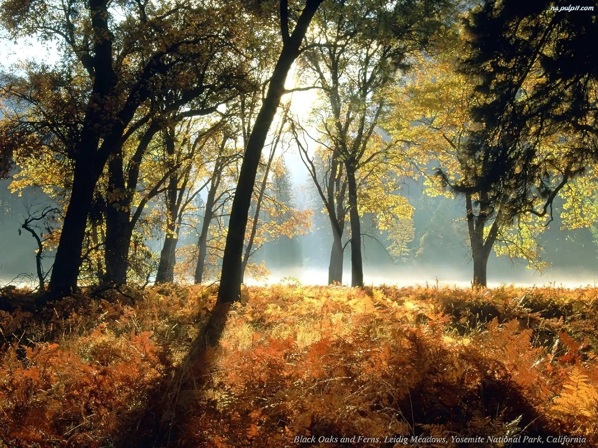 Paprocie, Las, Przechodzące Światło Jesień Na Pulpit