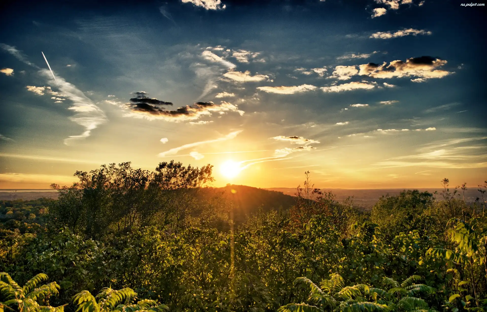 Paprocie, Słońca, Zachód, Drzewa Na Pulpit