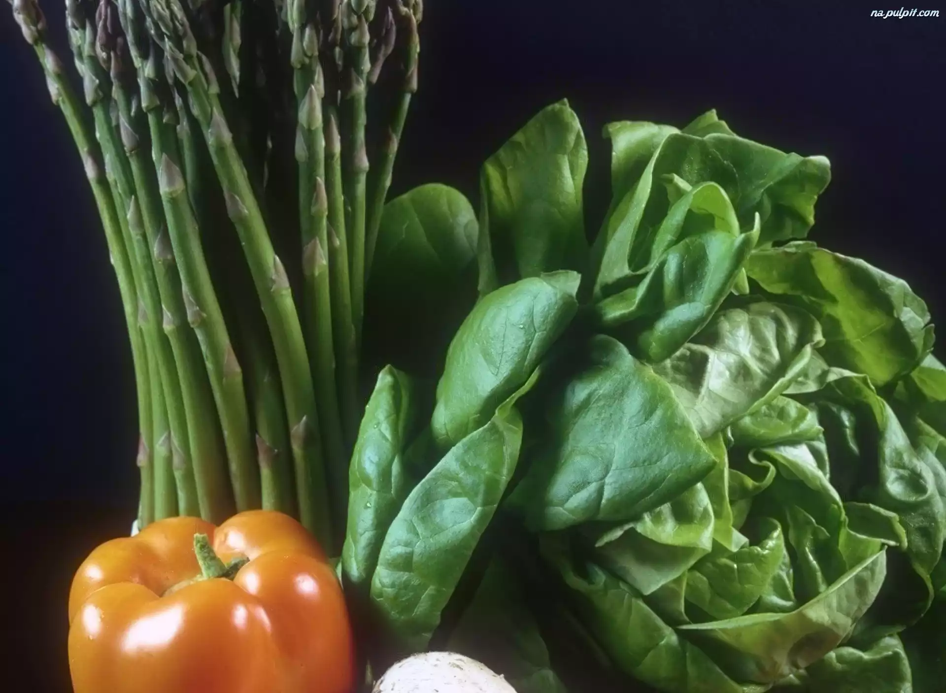 Papryka, Szparagi, Sałaty, Liście, Pomarańczowa Na Pulpit