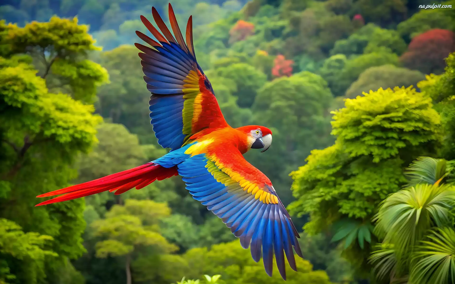 Drzewa, Papuga, Ara, AI, Lot Na Pulpit