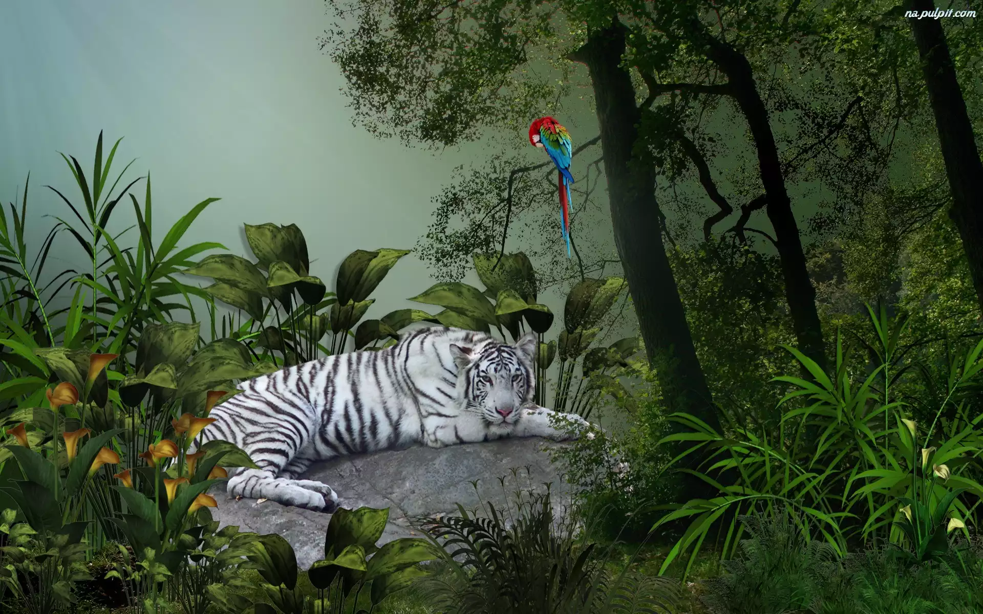 Papuga, Tygrys, Biały, Kamień